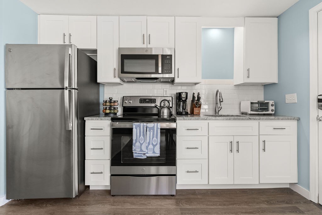 ✫ Fully equipped kitchen with all major appliances. Includes a drip coffee maker for your morning brew. Ideal for preparing your favorite meals during your stay.