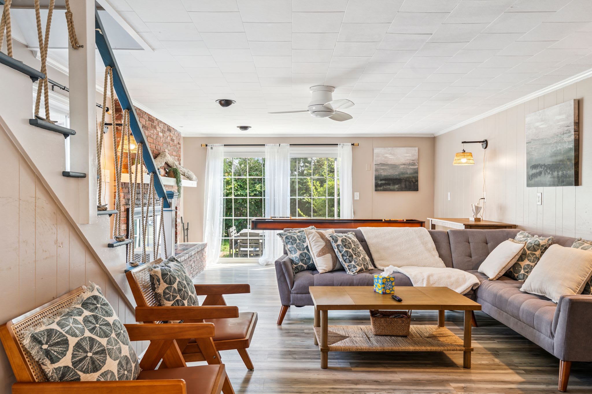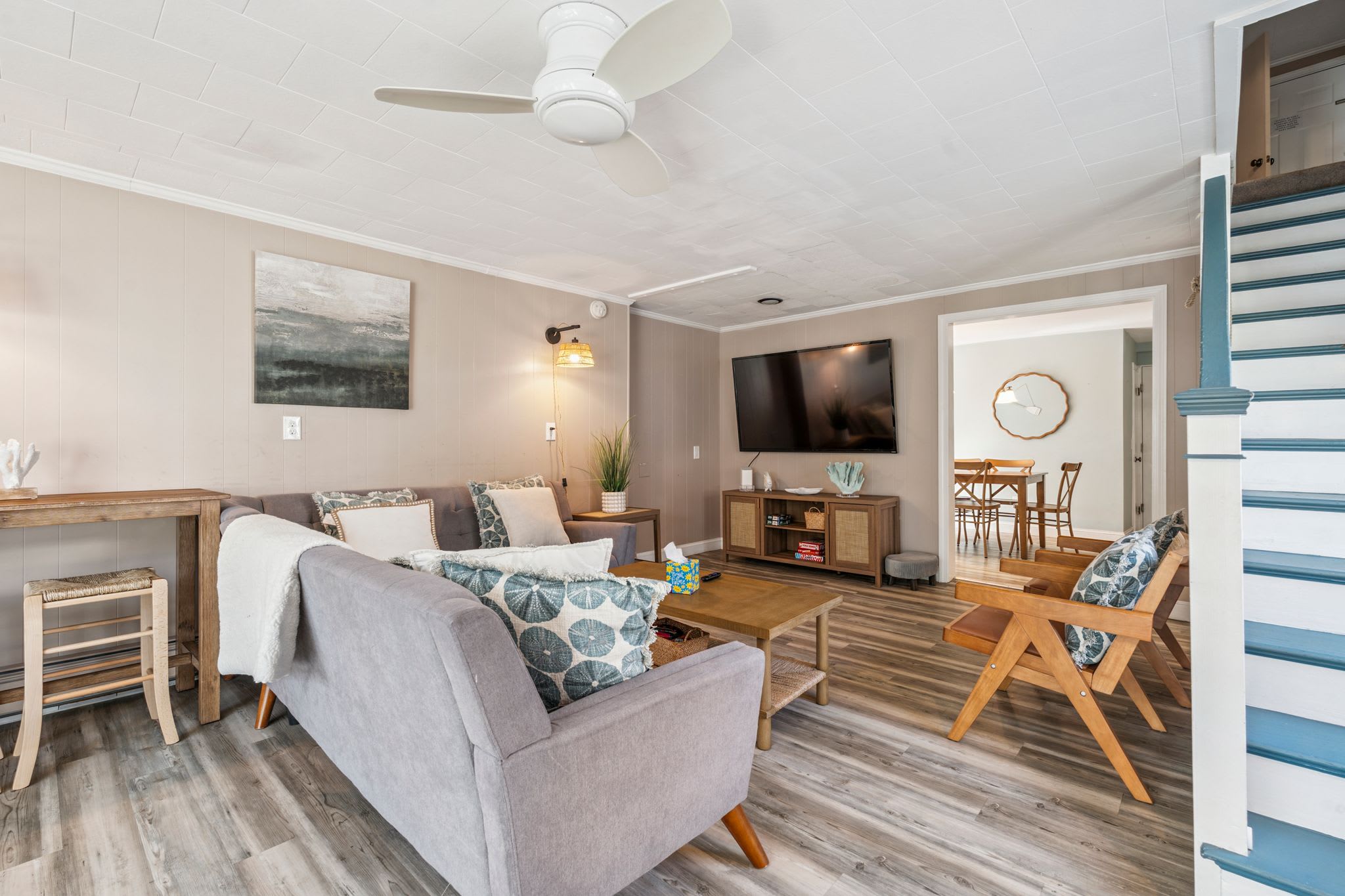 Welcome to "Dover Ave Dunes" back unit: A haven that's steps away from the beach and the Hampton Beach "strip". Accommodating 6 guests in 2 bedrooms and 1.5 baths, this home boasts a fully equipped kitchen and spacious living room with a shuffle board table for ultimate family fun. Enjoy a roomy backyard with a patio and outdoor dining set, perfect for games and savoring morning coffee amidst the refreshing sea breeze.