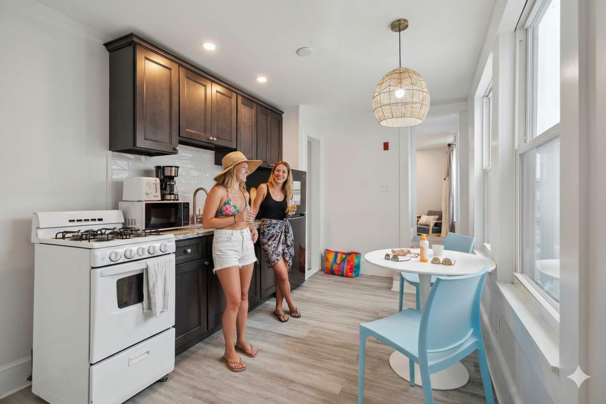 Welcome to the The Whale Tale - Newly renovated and professionally designed, with a private balcony featuring ocean views. A Hampton Beach perennial favorite in the heart of the action. Steps from the beach, arcades, mini-golf, Seashell Stage, Casino Ballroom & more. Perfectly situated at the beginning of "the strip." Your unforgettable beachside escape awaits!