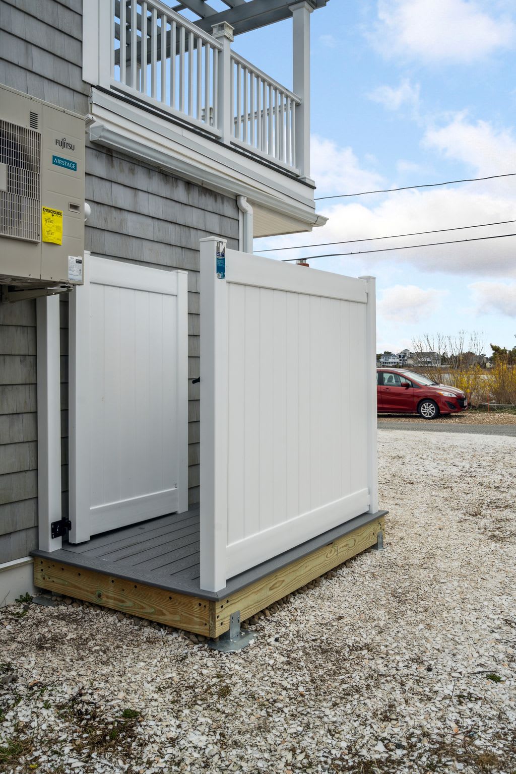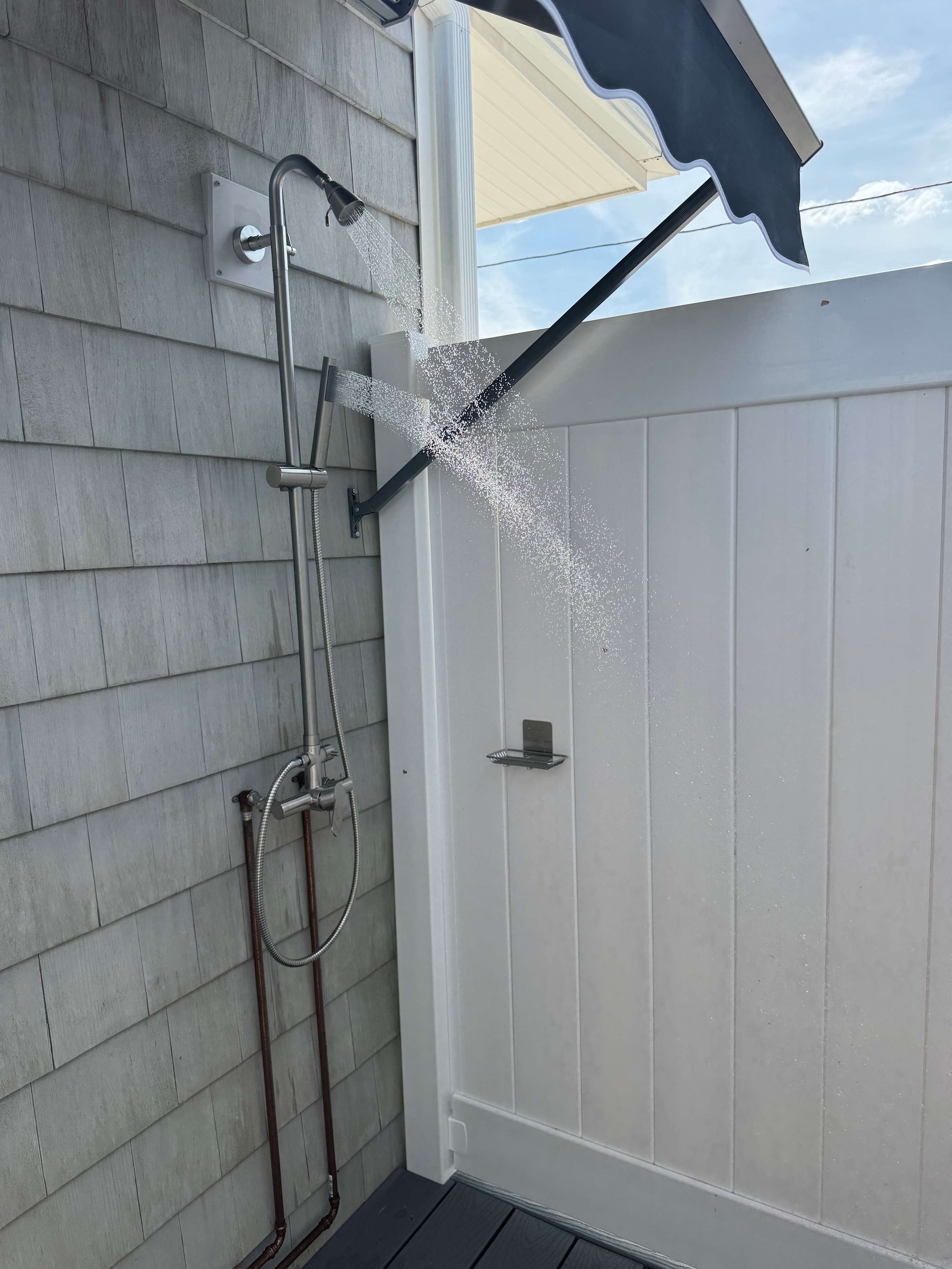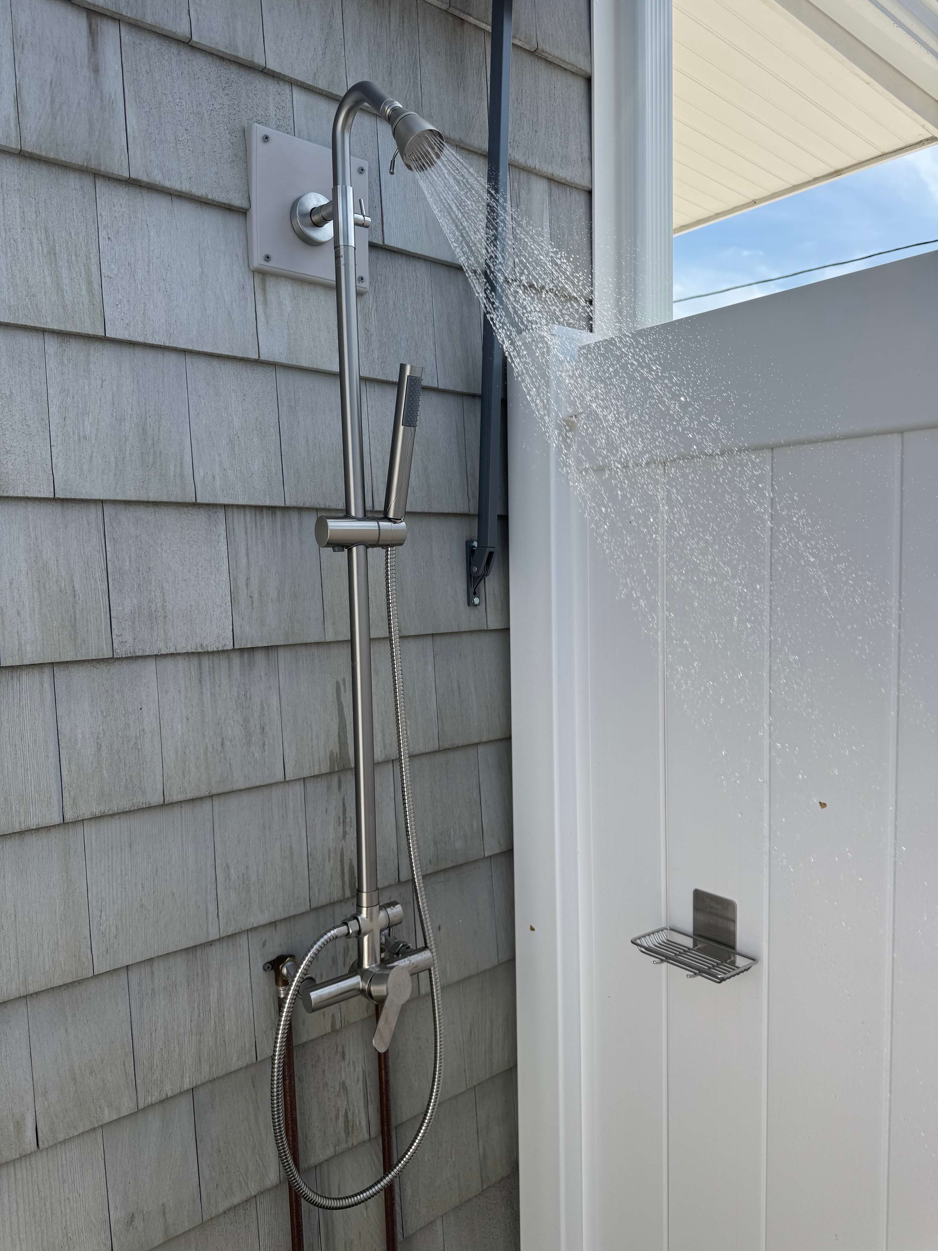 Outdoor shower available during summer season.