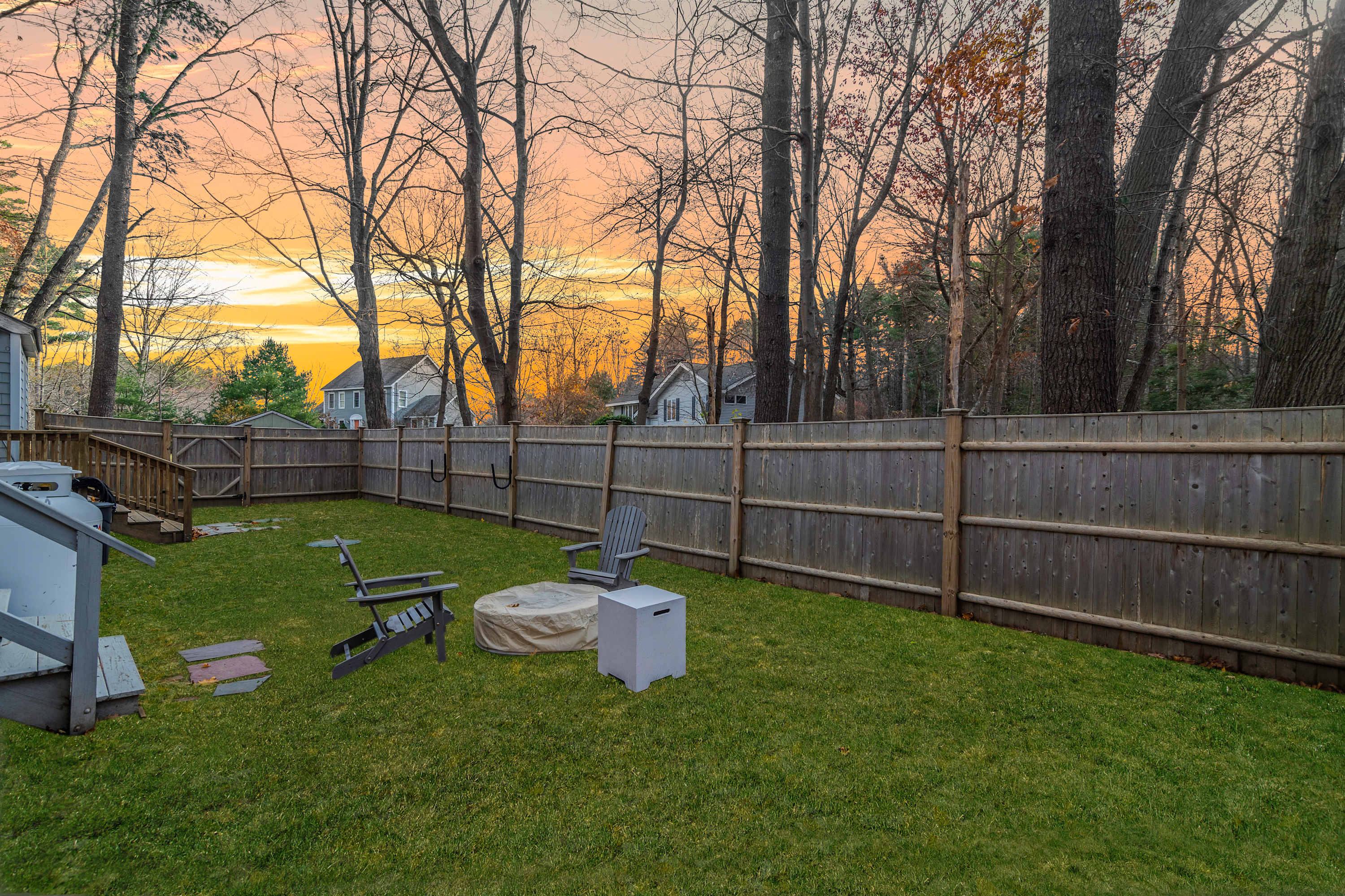 ☼ Fully fenced-in backyard with a gas fire-pit