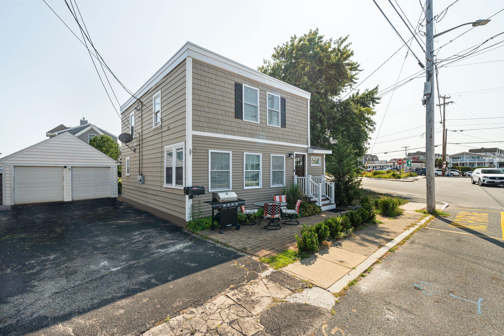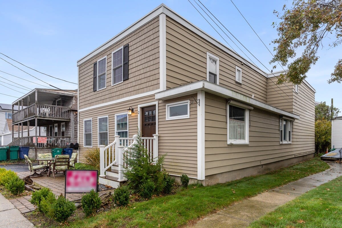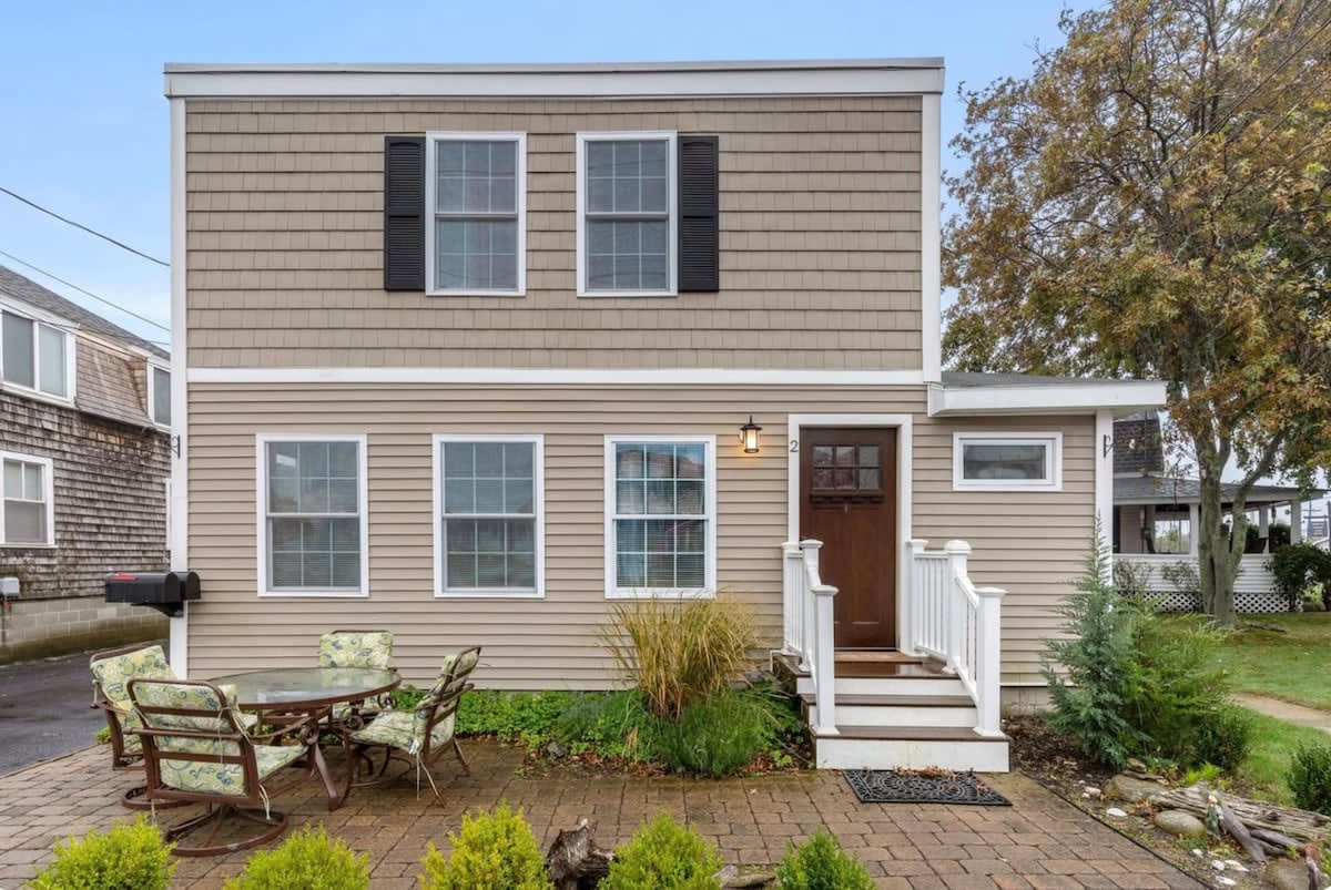 Welcome to 'Dover Ave Dunes': A 2-unit haven steps from the beach and the Hampton Beach "strip" located on the 'island section' of Hampton Beach. Accommodating 12 guests in 4 bedrooms and 2.5 baths, this home boasts 2 kitchens and living rooms for ultimate comfort. Enjoy a roomy backyard with a patio and outdoor dining set, perfect for games and savoring morning coffee amidst the refreshing sea breeze.