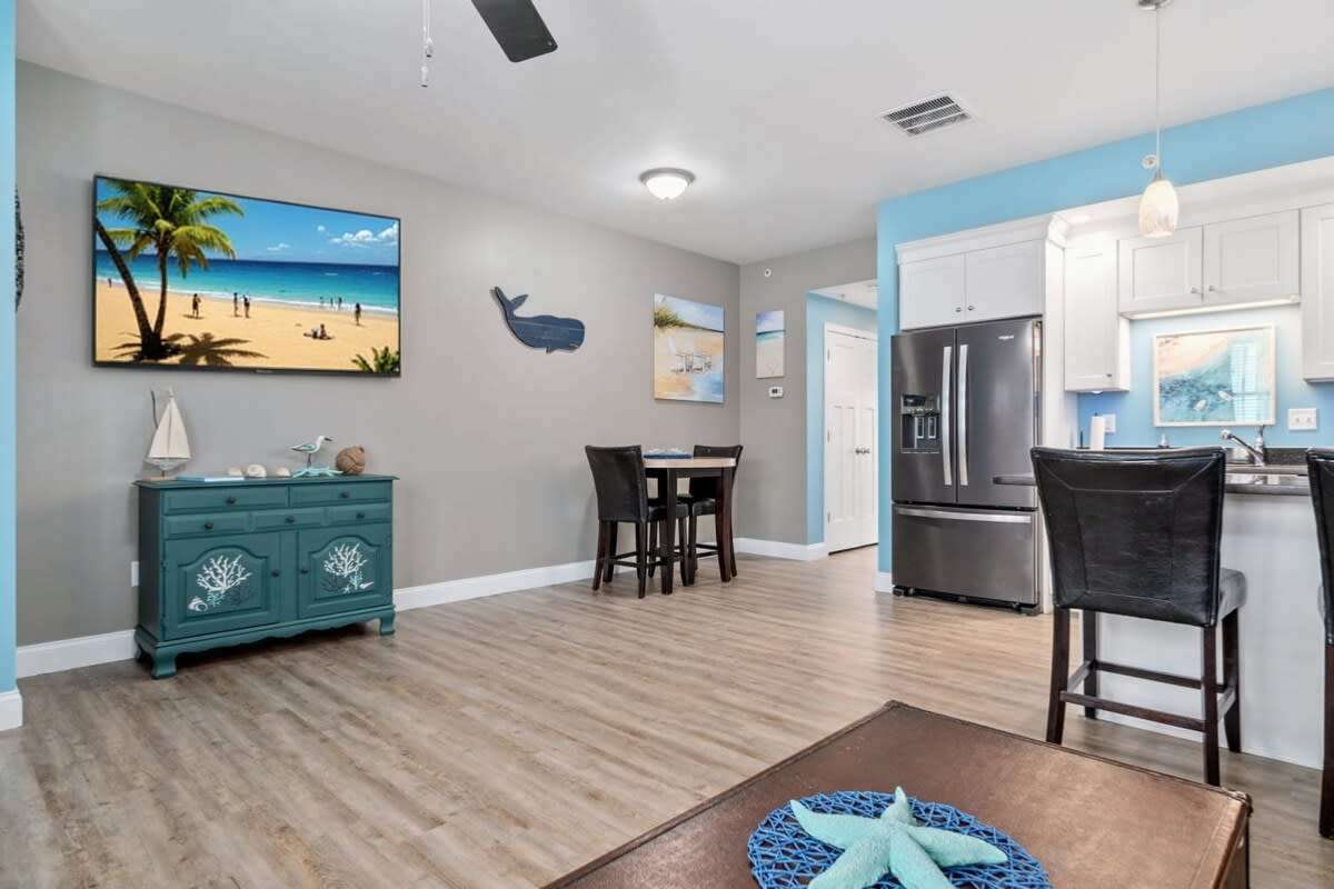 This condo was a great find. It is walking distance to all the attractions & restaurants and one block from the beach. The inside of the condo was spacious and extremely clean, there is a washer & dryer in the unit also!