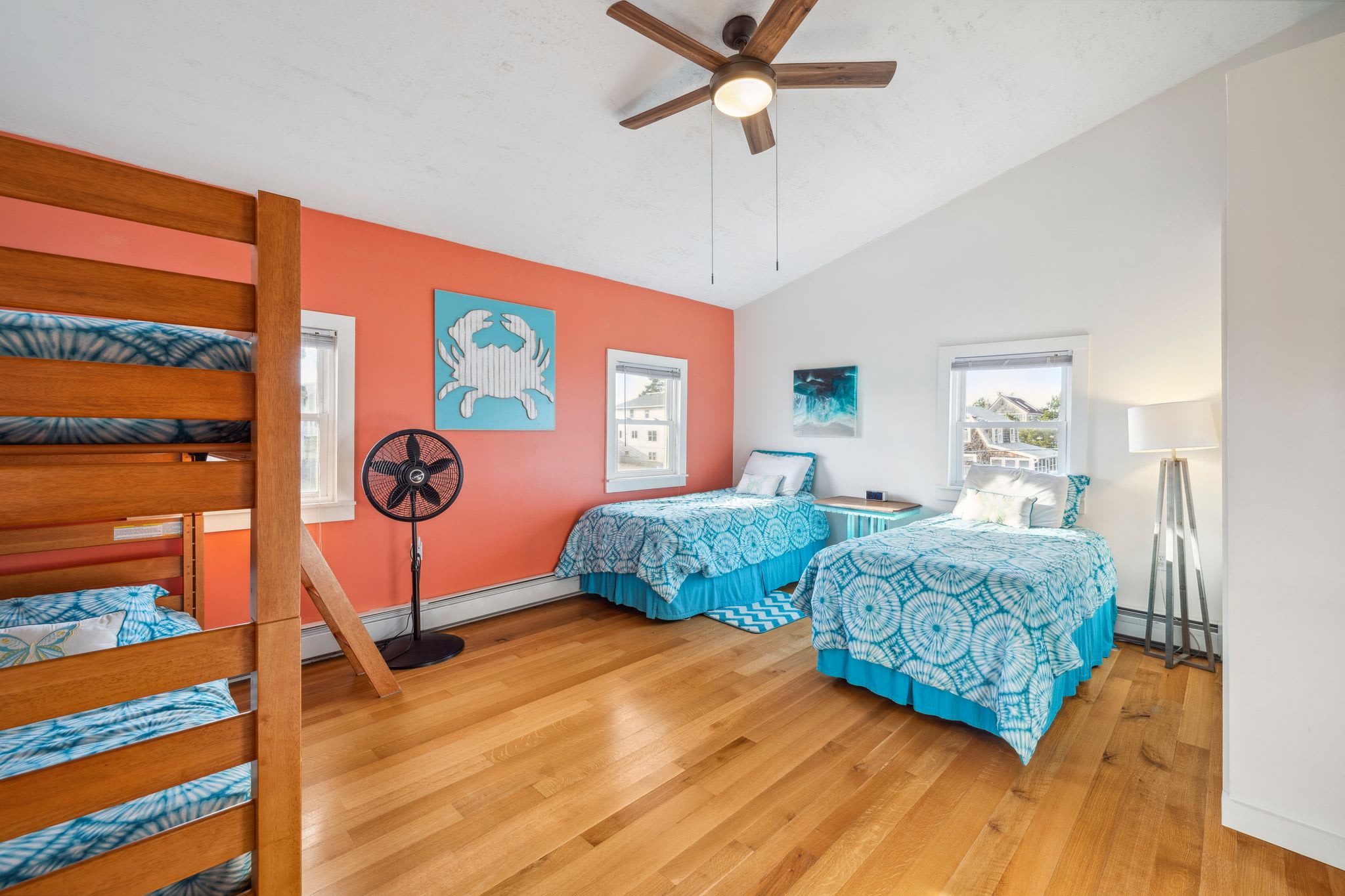 Welcome to The It’s All Good Beach House, a spacious 5-bedroom coastal home just steps from Plum Island Beach. This furnished, multi-level home features a brand-new kitchen, in-unit laundry, fast WiFi, central heat, EV charger, ample parking, and a seasonal hot tub. Enjoy multiple living spaces, a sunny enclosed porch, large deck, and room for larger groups. Just 10 minutes to downtown Newburyport.