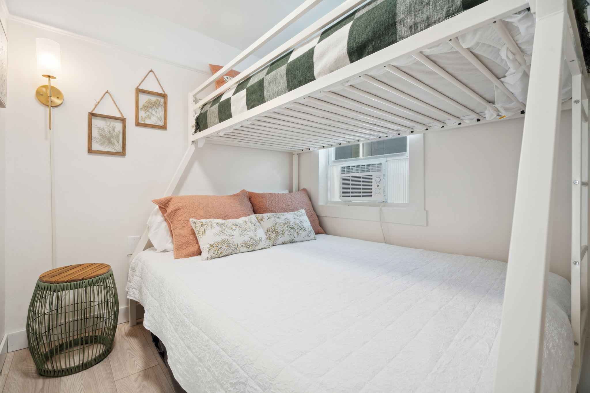Sleeping arrangements include two bedrooms plus a twin pull-out sofa best suited for children or one smaller adult.