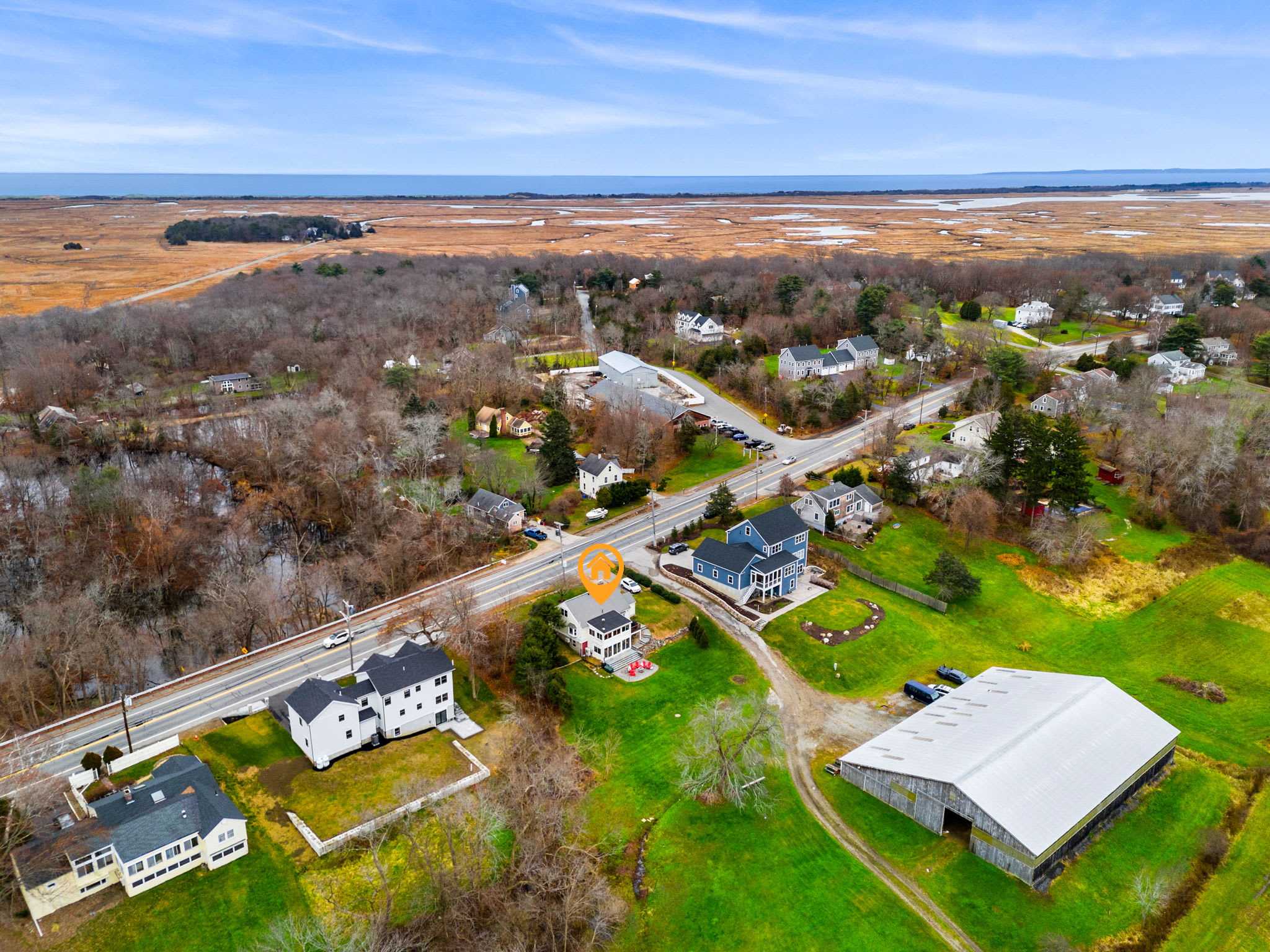 Mothertree Farmhouse is a spacious 3-bedroom, 2.5-bath retreat offering the perfect blend of coastal access and countryside calm. Set beside scenic farmland just minutes from downtown Newburyport and Plum Island beaches, this fully furnished home features multiple living areas, a game room, dedicated workspaces, and inviting outdoor spaces with sunset views. Ideal for summer getaways, extended stays, families, and remote-friendly escapes.