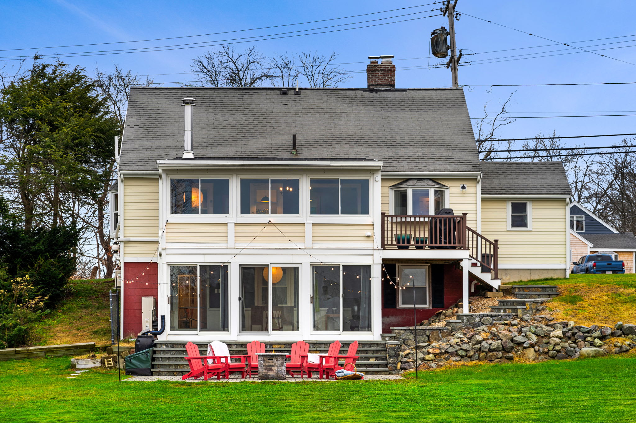 Great location, just outside of town. Loved the sun room and the back yard seating with lights and firepit. The kids enjoyed the downstairs area with big TV and ping pong.