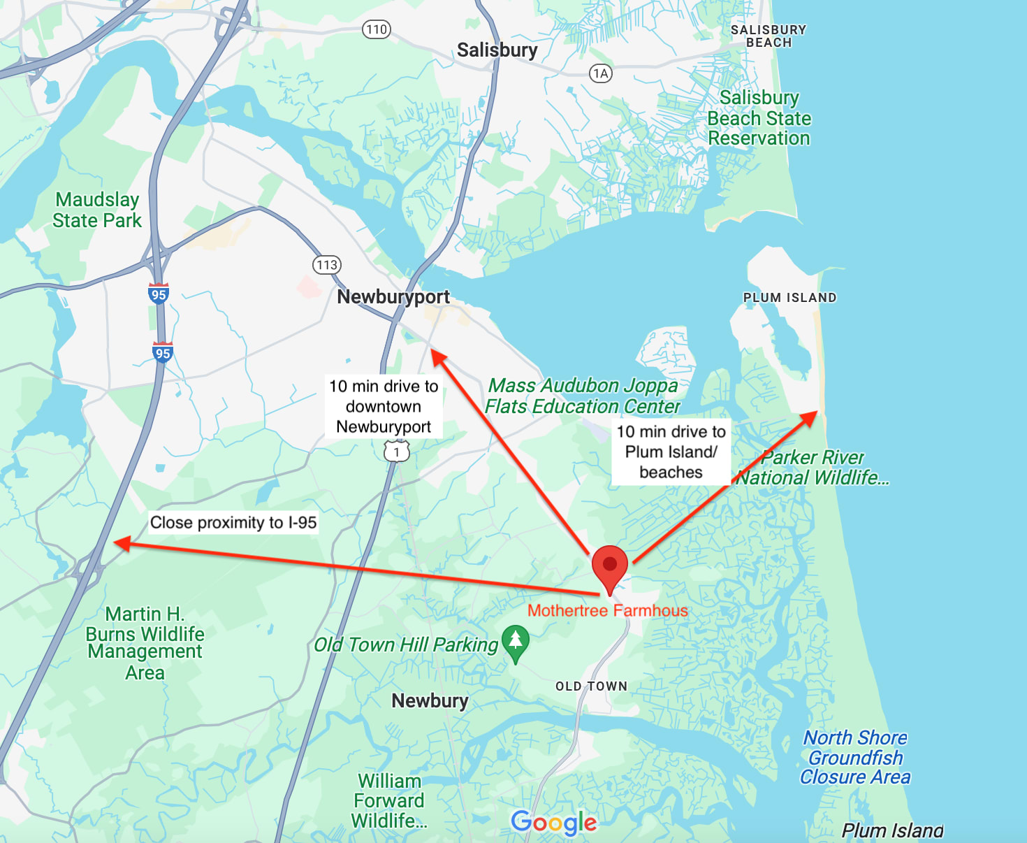 What a great location to Newburyport and the surrounding beaches. Not too difficult to use as a jump off spot if you're heading towards Beantown either.