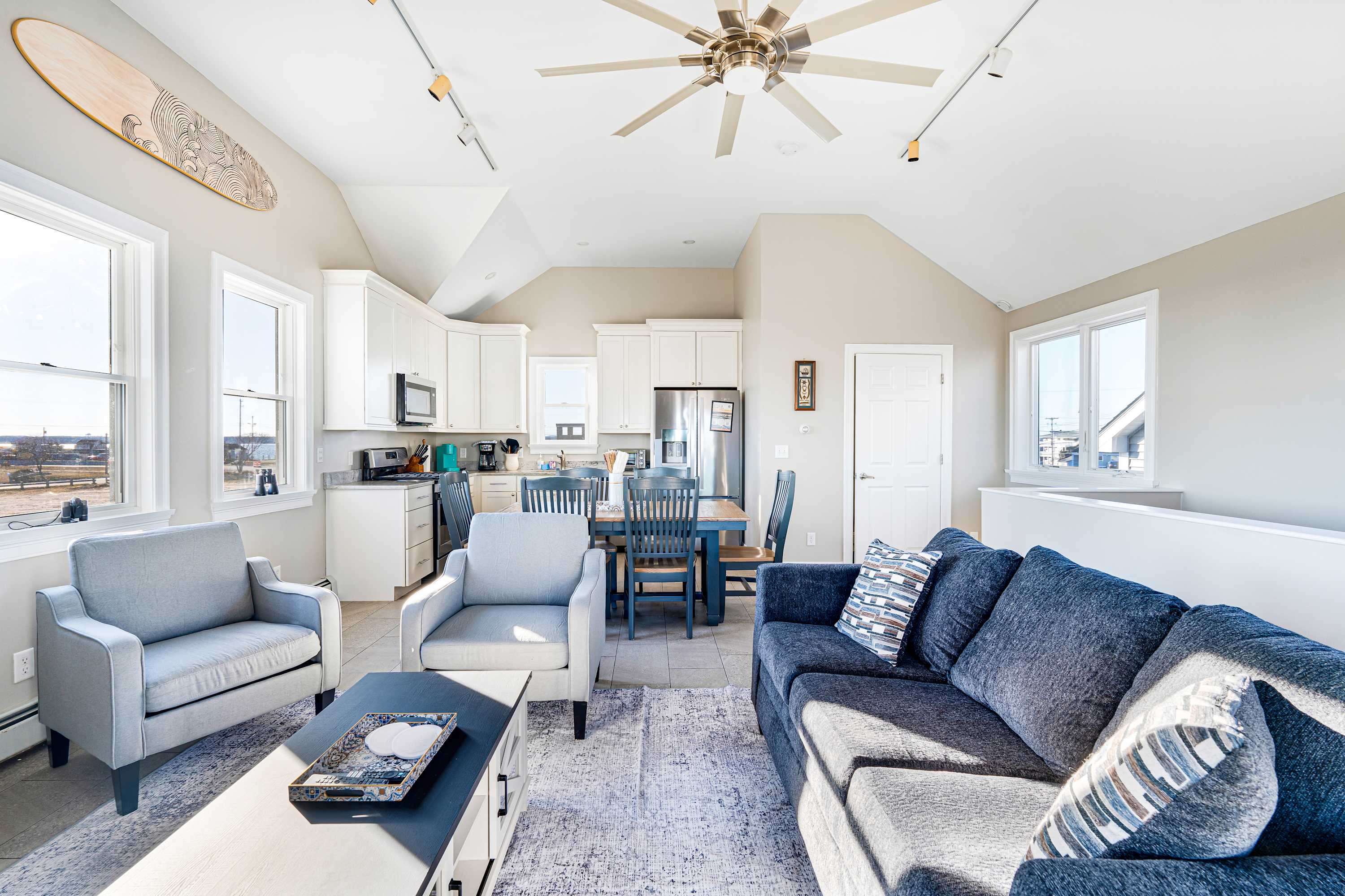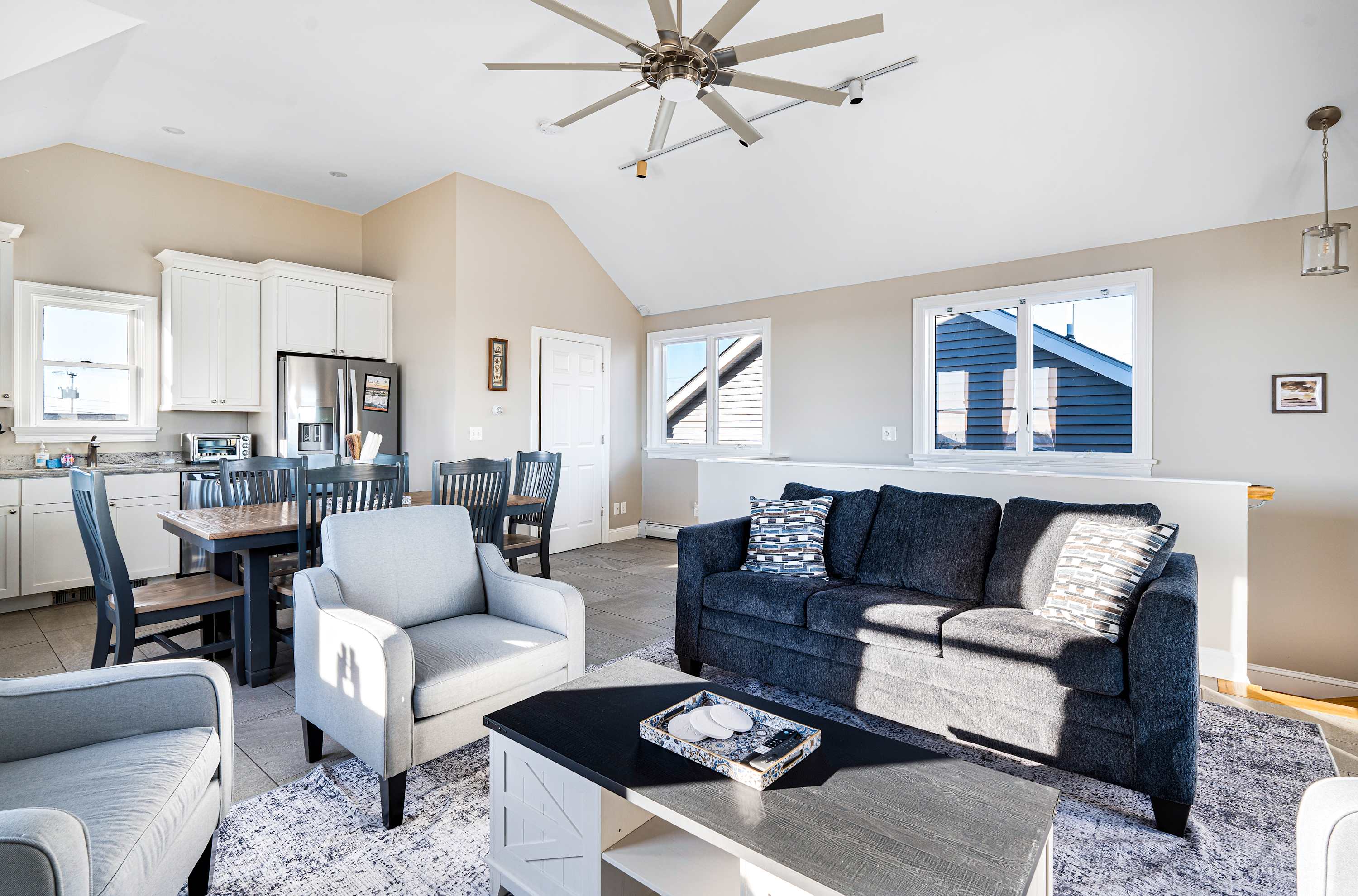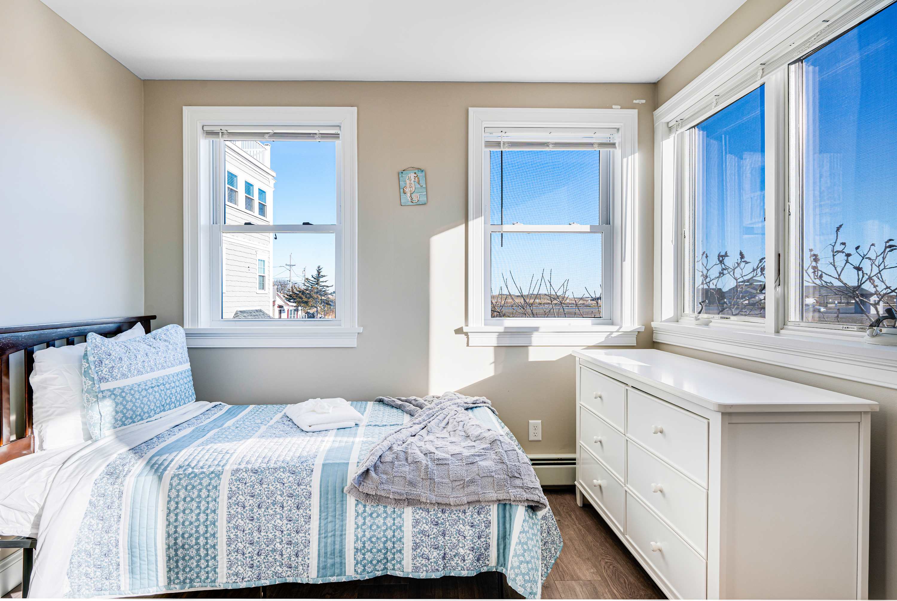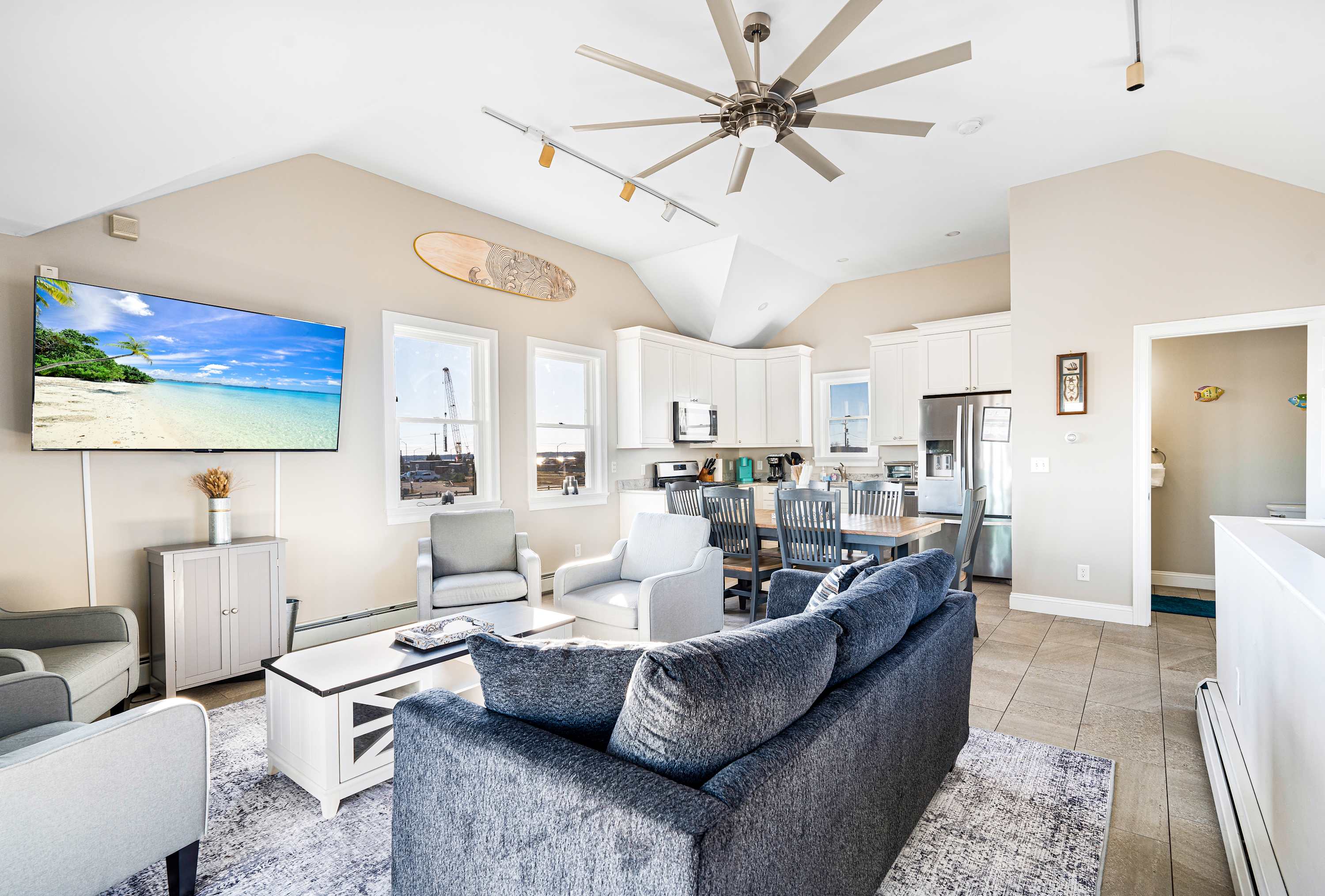 Oceanview Oasis is a spacious 4-bedroom, 2.5-bath home located in the island section of Hampton Beach. This three-level home features ocean and harbor views, a reverse floor plan with living space on the top floor, private balcony, in-unit laundry, and parking for four vehicles. Ideal for families, professionals, or extended winter stays just steps from the beach and walkable to the Hampton strip.