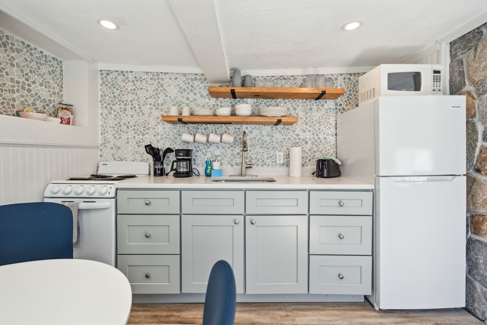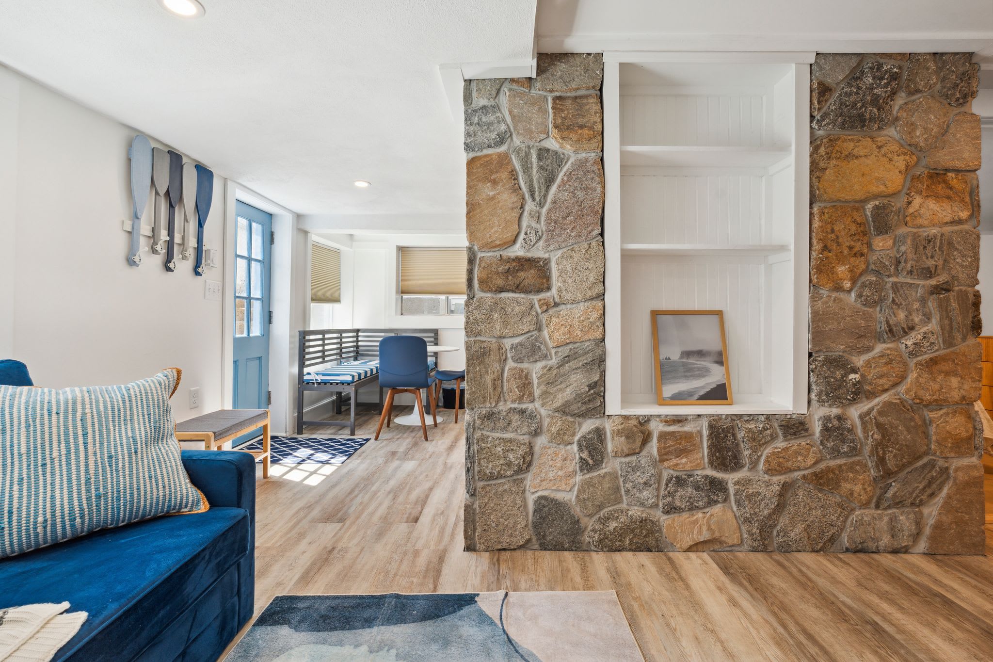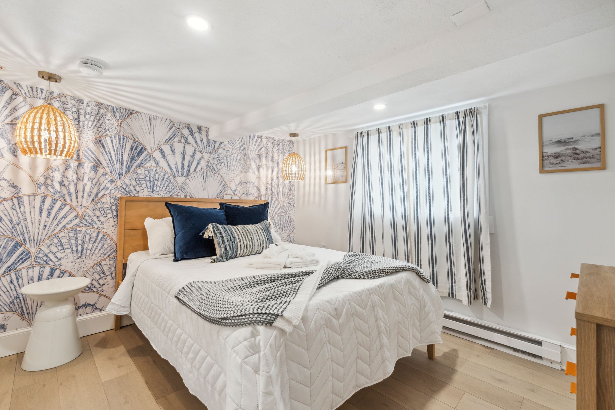 Welcome to "The Americana" at Hampton Beach - a newly renovated and professionally designed modern Hampton Beach condo sits just steps from the sand at the start of the strip. Walk to the boardwalk, Casino Ballroom, Seashell Stage, arcades, dining, and attractions, then relax in a clean, comfortable space with Smart TVs, A/C, high-speed WiFi, and parking included. Sleeping up to six, it’s perfect for summer beach trips, concerts, and family getaways.