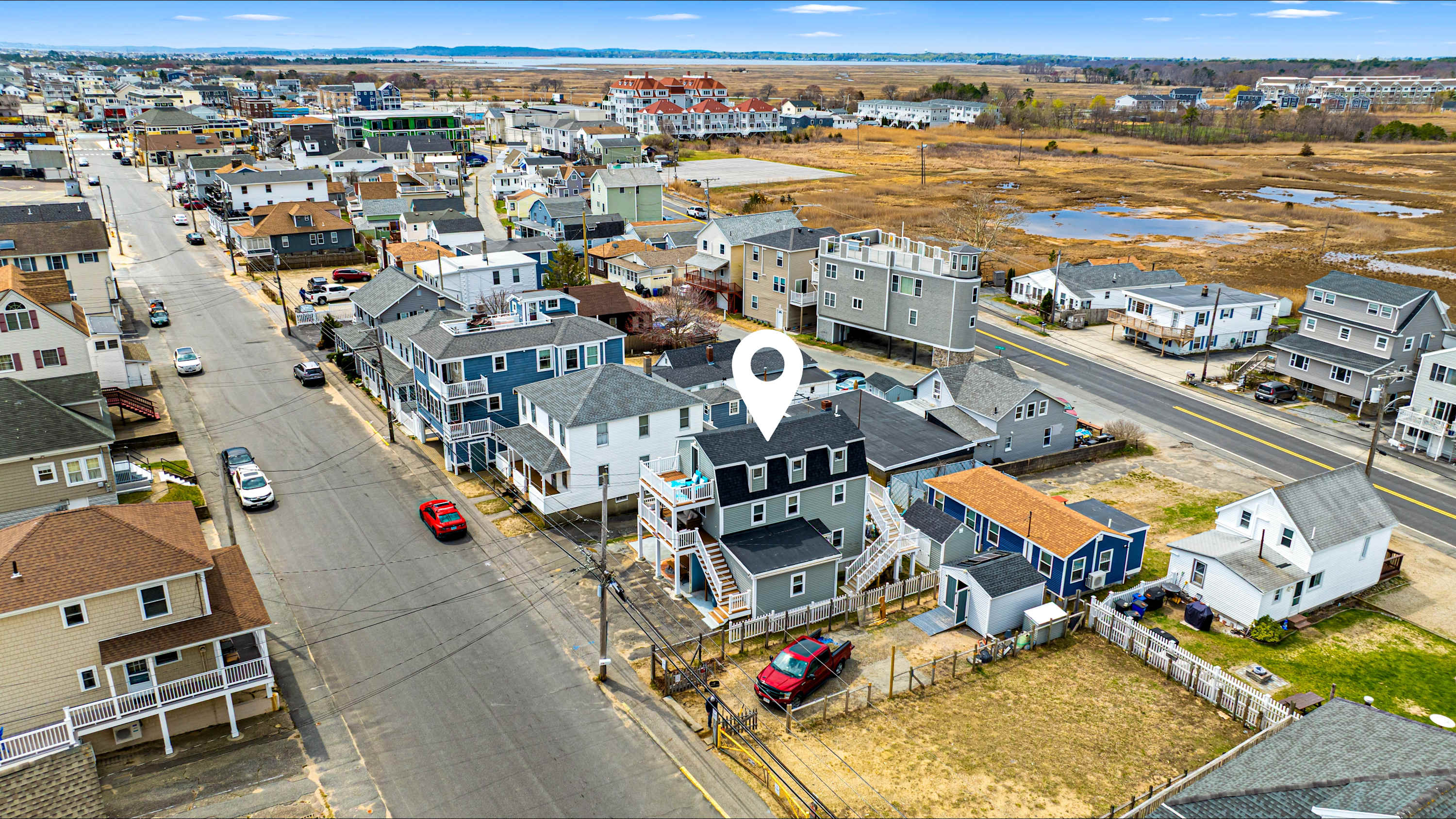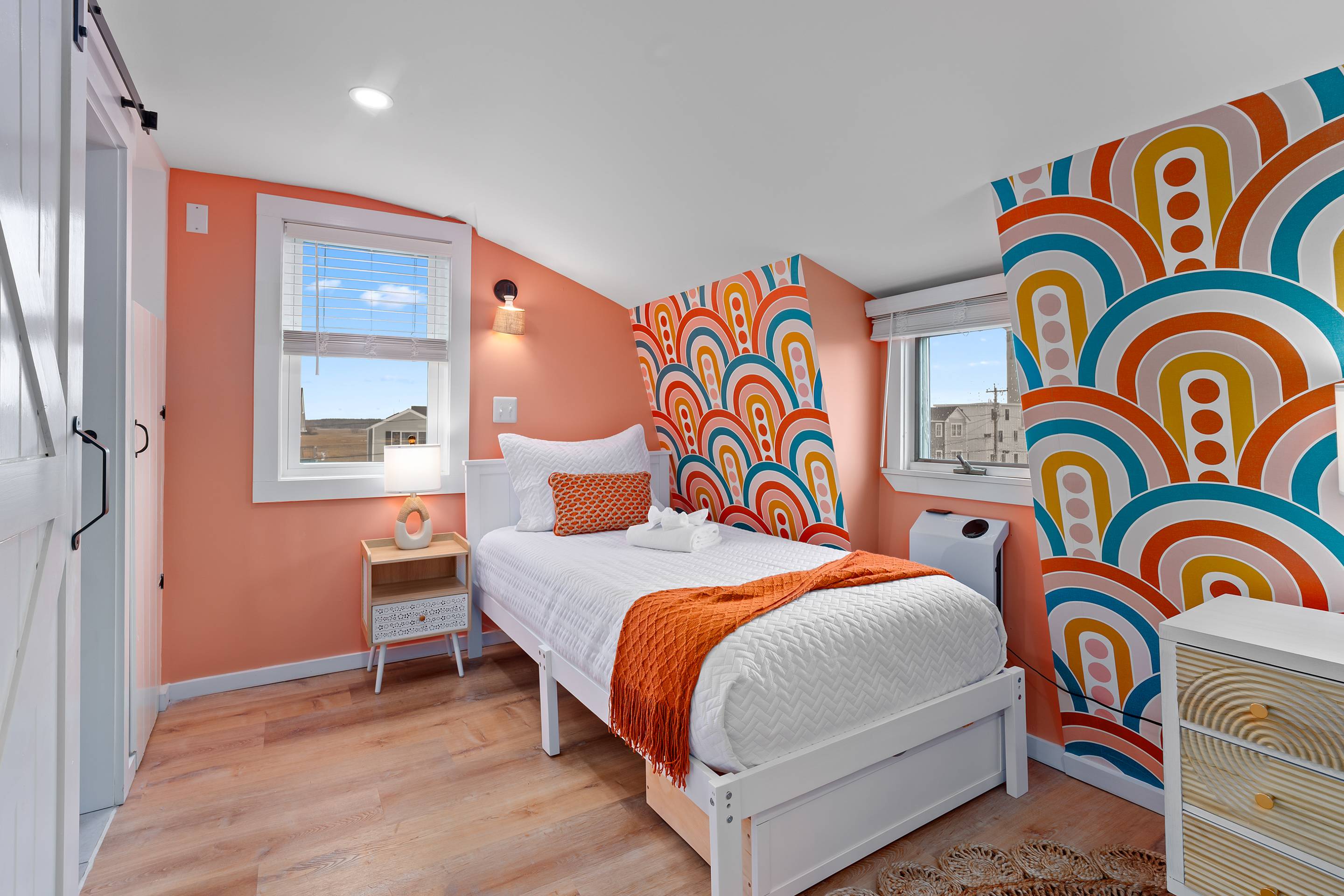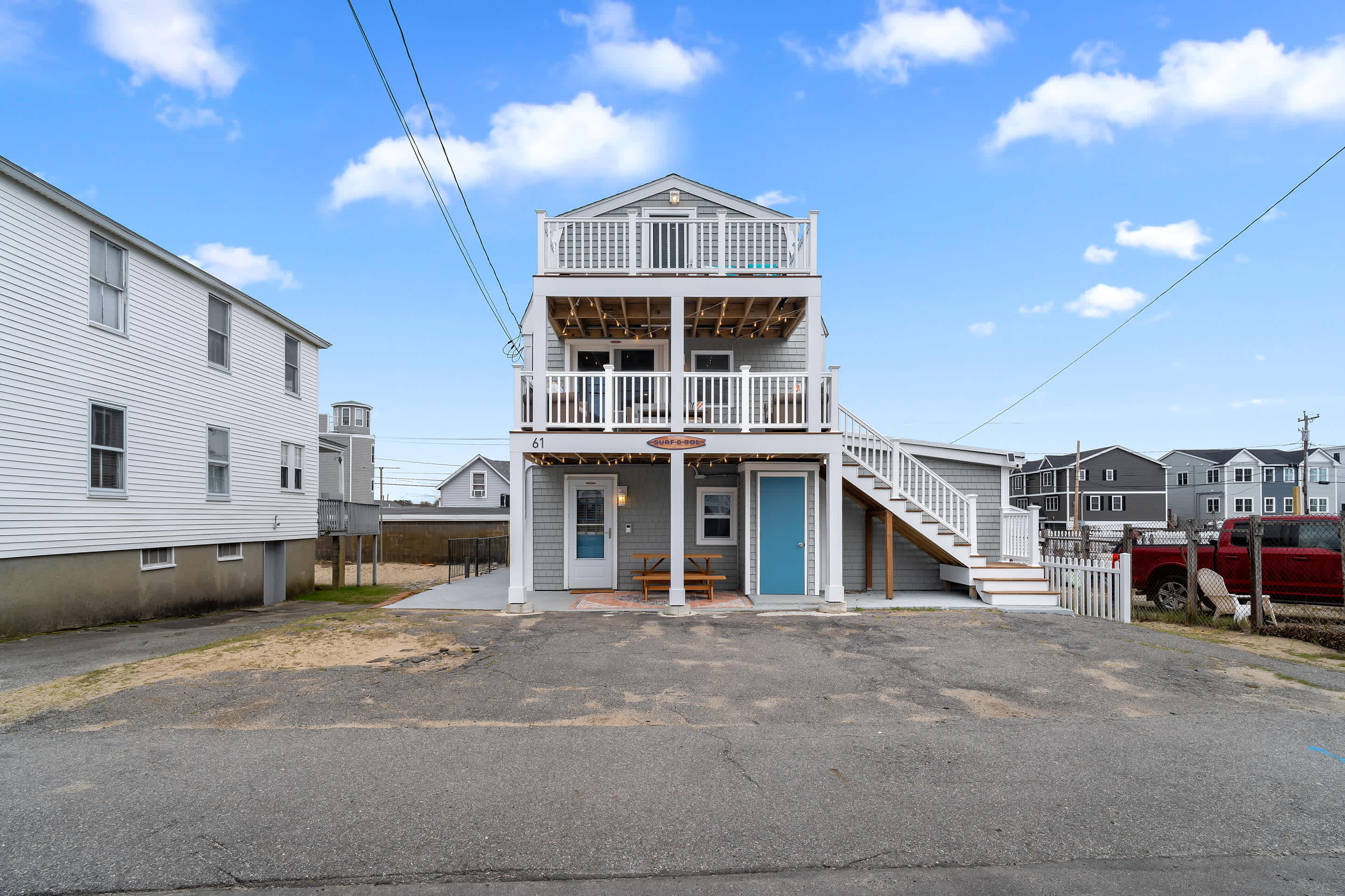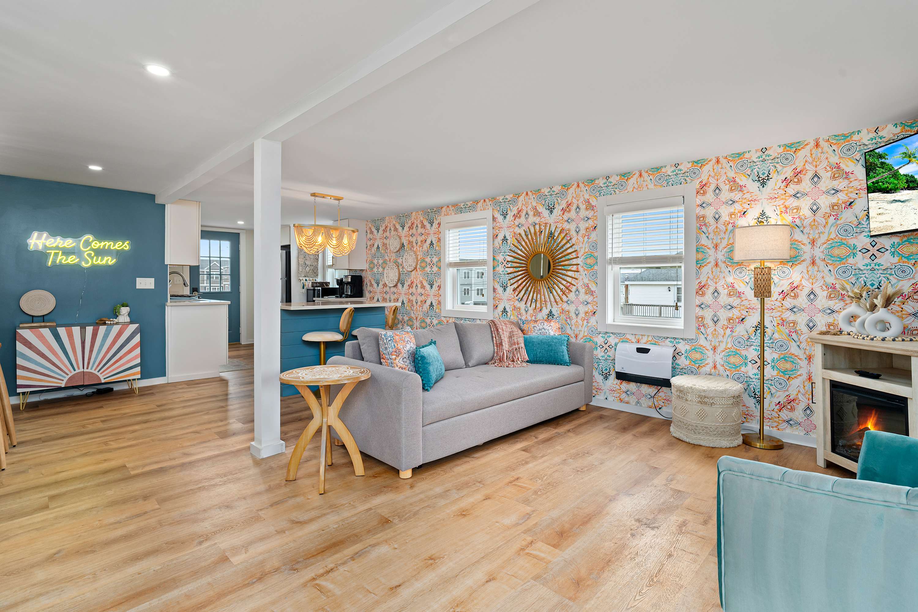 "Salisbury Sol" was recently professionally designed & furnished in April 2025. We take pride in offering a fun and unique space for our Salisbury Beach visitors! All the indoor and outdoor furniture is new - the couch, chairs, table, bar stools, beds, linens, towels, desk etc.