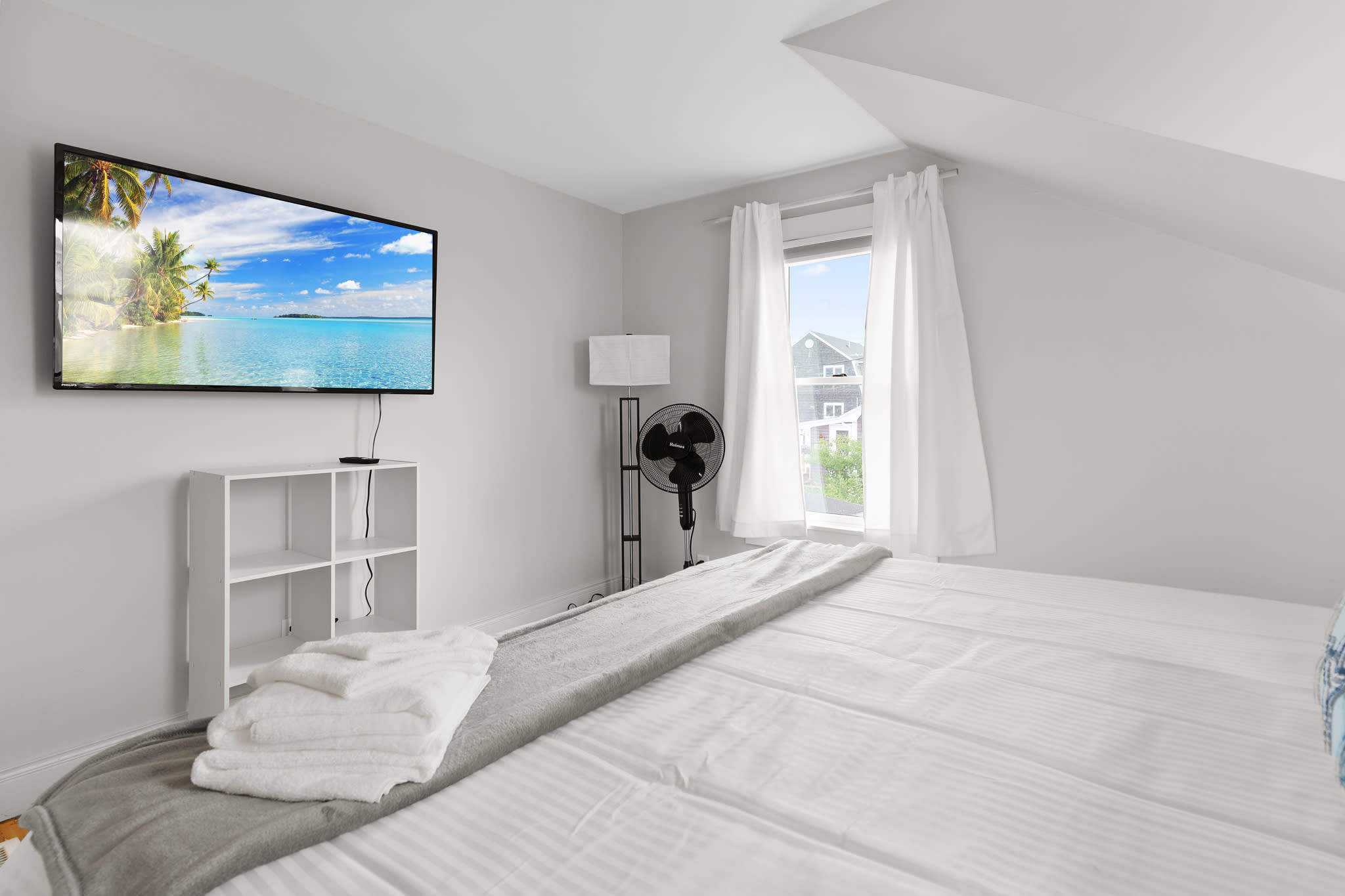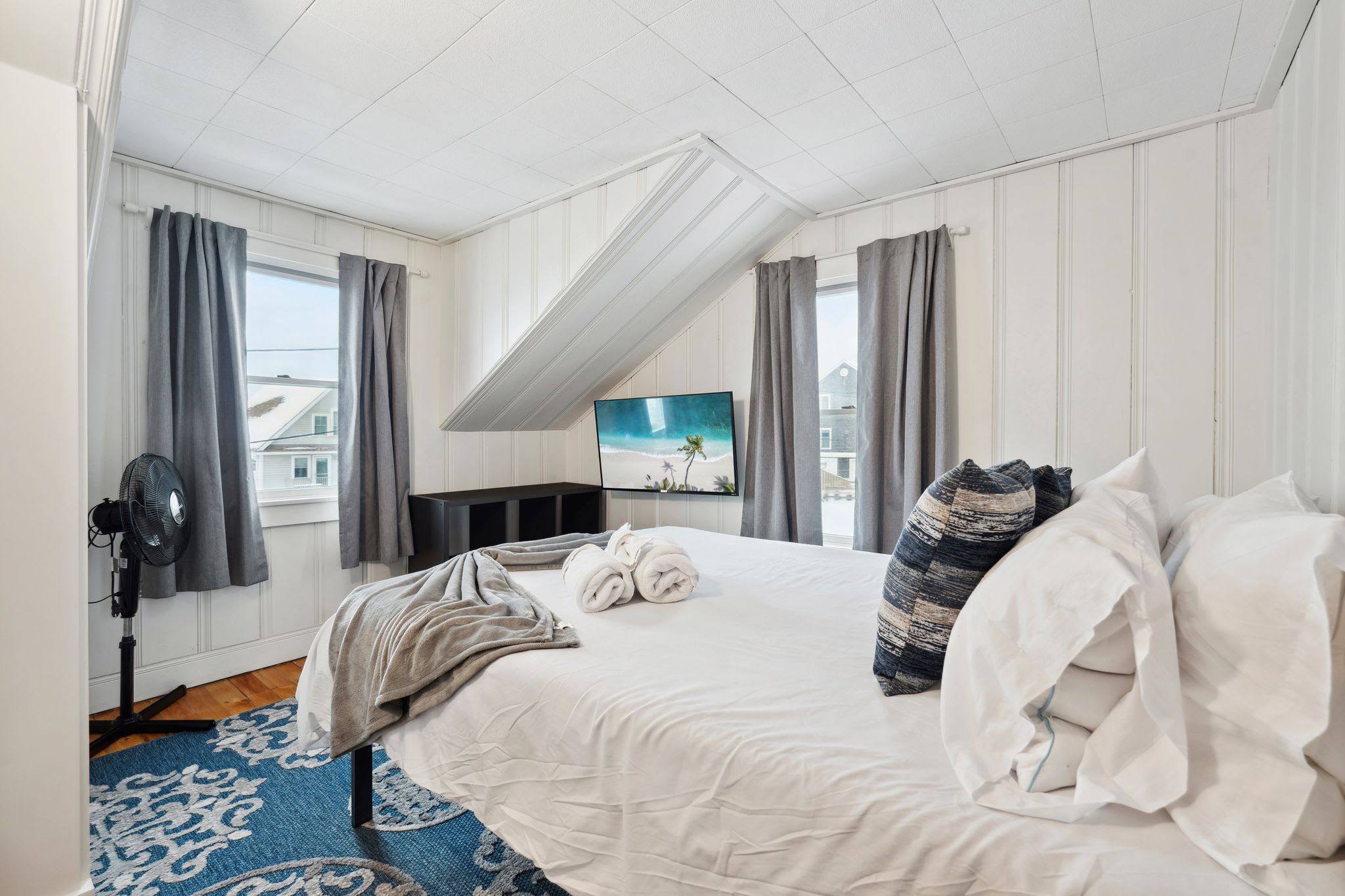 This was a great stay for our family to stay at for my cousin's wedding, so we could all be together and have our own space. A TV in each room is a nice touch too. I loved being able to walk to the beach and even encountered a lovely local woman when I went cold plunging. The bed I slept in was very comfortable. The kids enjoyed sleeping on the couches, their choice. The check-in and check-out instructions were super clear. My only suggestion is to have an 11am or 12pm check-out without an extra fee. Oh! Also loved that breakfast/food were within walking distance too! Super great place and totally recommend staying here with a group.