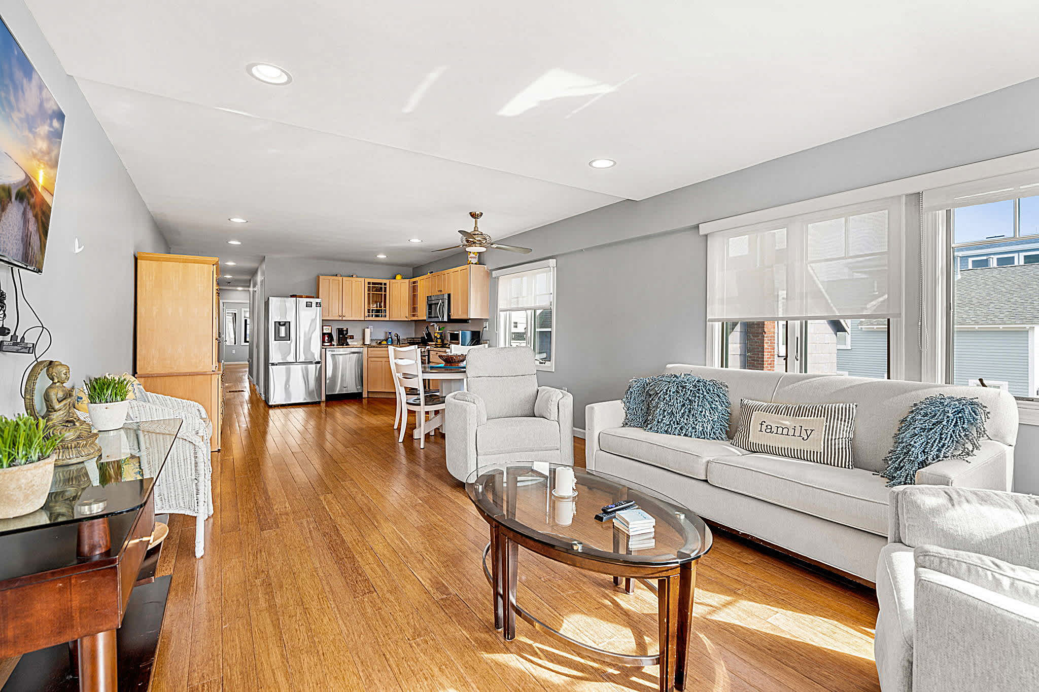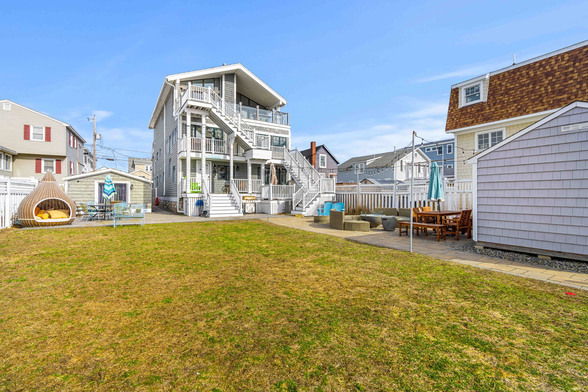 Welcome to “Serendipity Beach Retreat” at Salisbury Beach – a spacious coastal getaway just steps from the ocean. Perfectly located between Salisbury and Hampton Beach, this expansive home offers the ideal setting for family vacations, group or corporate retreats, or multi-family escapes. Enjoy bright, open living spaces, fully equipped kitchens, ocean-view rooftop decks, and a shared backyard complete with seating, a fire pit, and grill. Your perfect beachside retreat awaits!