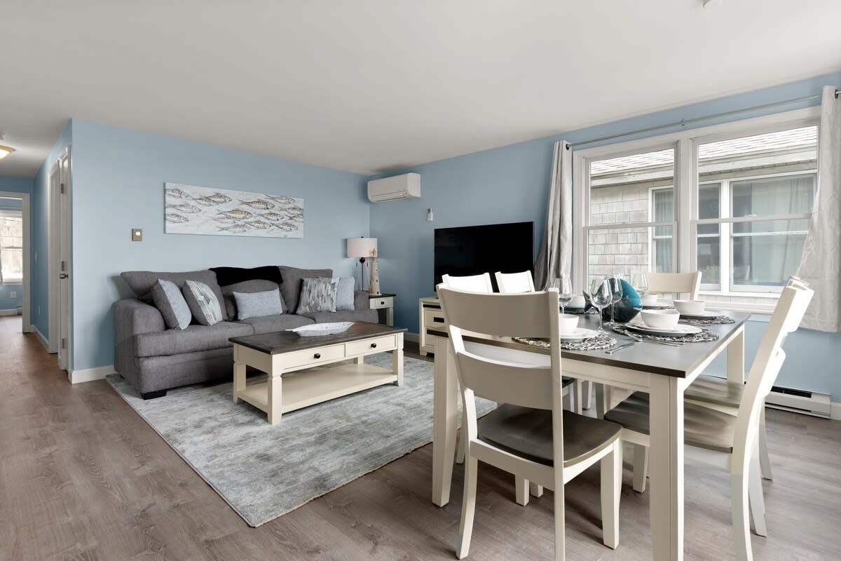 Welcome to "Serenity @ Snug Harbor", Rye's newest boutique rental accommodation. With 10 units on the property, all with stunning water views, across the street from the ocean, and a short walk to Wallis Sands Beach. Unit 4 specifically features sizable front windows with a partial ocean view and a comfortable couch to accompany it. Don't want to sit inside to enjoy the view? Relax on your private deck with ample outdoor furniture for the whole family to join in on taking in the breathtaking sites.