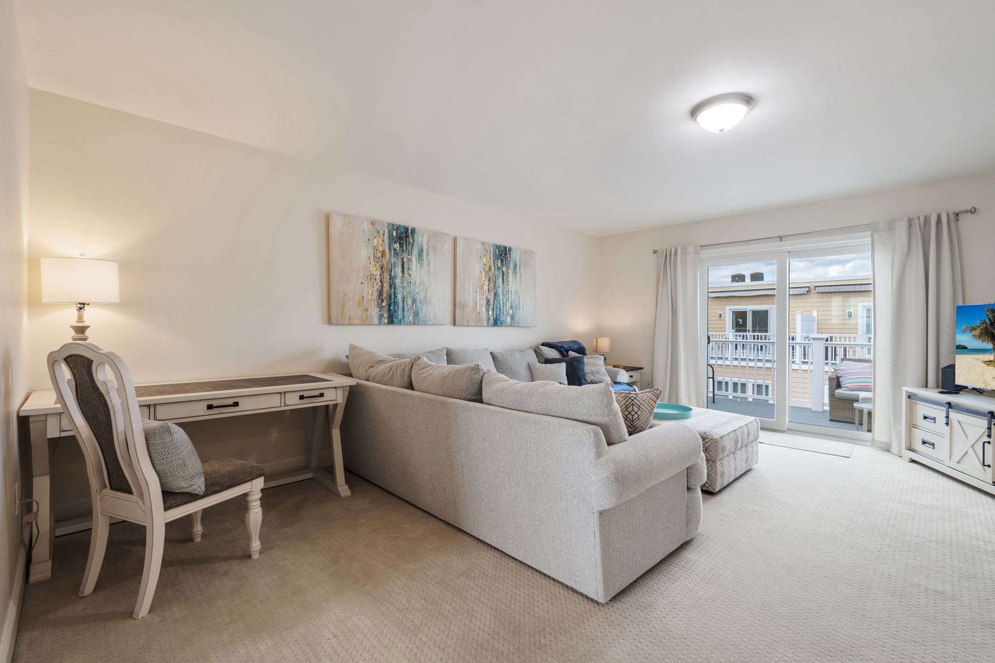 Welcome to Sunset Sanctuary - an updated 3-bed, 2.5-bath condo in the heart of Hampton Beach, just steps from the sand. Tucked one street back from the lively strip, you’re within easy reach of top restaurants, shops, and entertainment. Enjoy a spacious multi-level layout with two TV rooms and a private second-floor balcony featuring a cozy outdoor sectional. Perfect for families, professionals, or extended winter stays seeking comfort and walkable beach access.