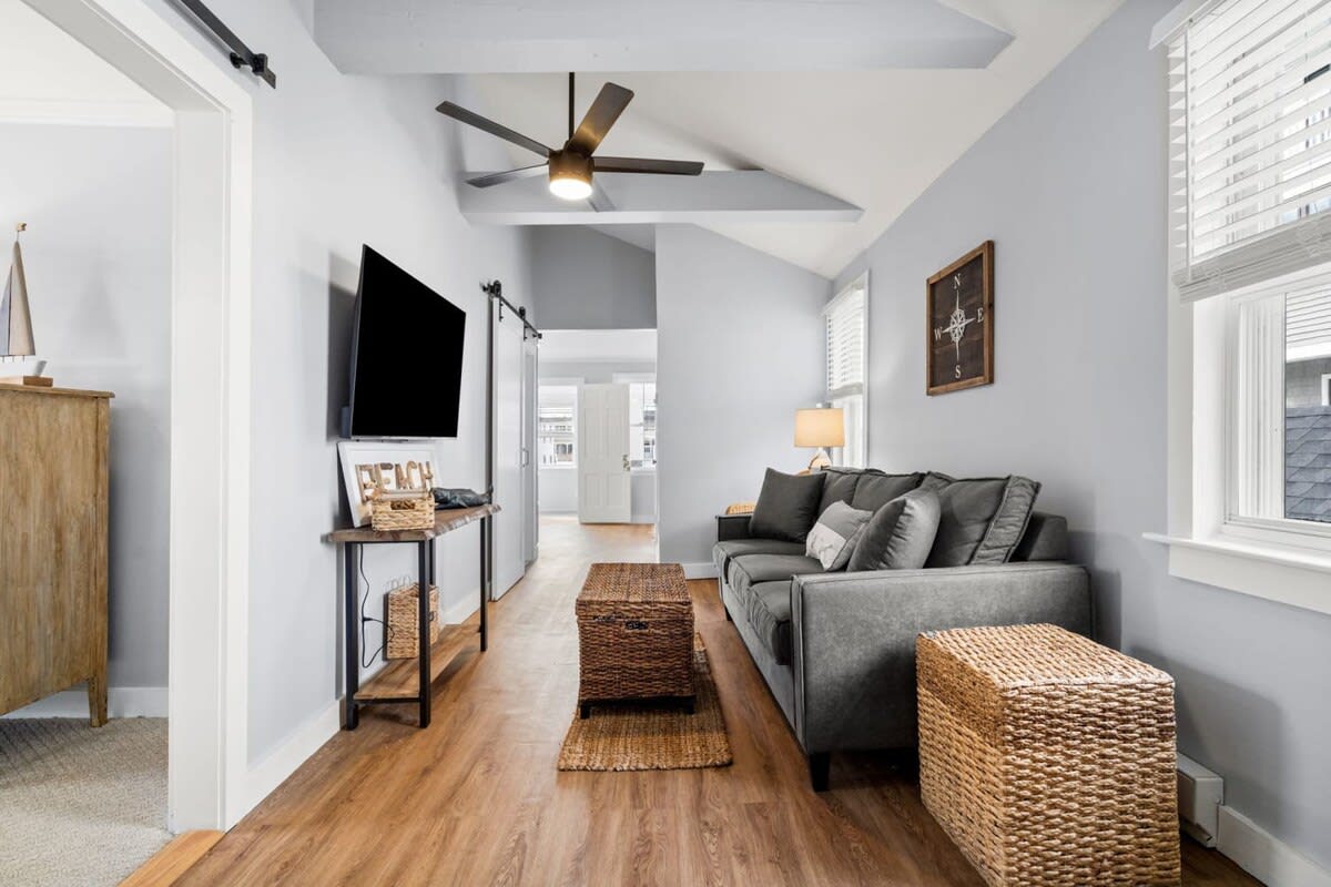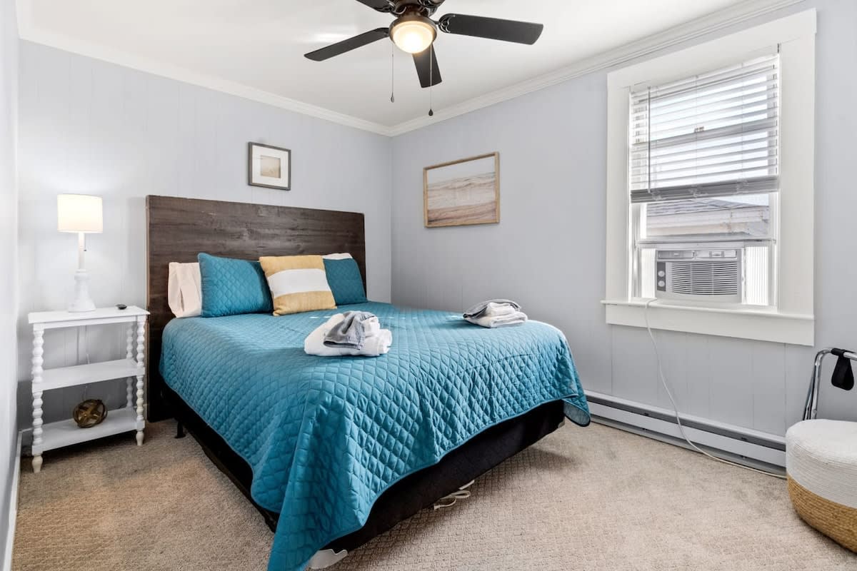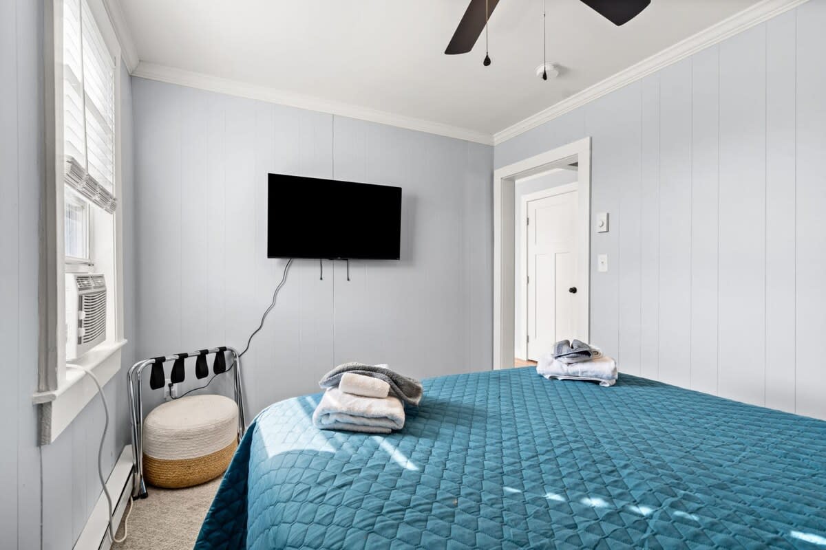 The Cammie Cabana is a 2 bed, 1 bath, pet-friendly, 2nd-level apartment sleeping up to 6 people in 1 queen bed, 1 twin-over-full bunk bed & couch. Located 1 block from the beach and 2 blocks to "the Salisbury center", the property features fast WiFi, a dedicated work-from-home office, sun room, 2 smart TVs & convenient off-street parking for 2 vehicles. Well suited for traveling professionals, couples, or small families seeking a comfortable coastal home. Now seeking winter tenants from Dec-Apr.