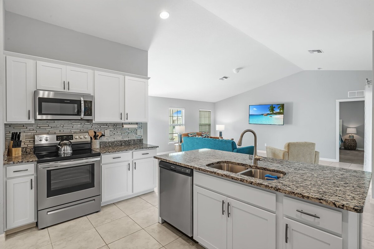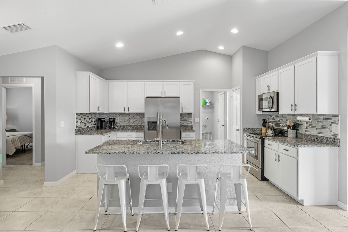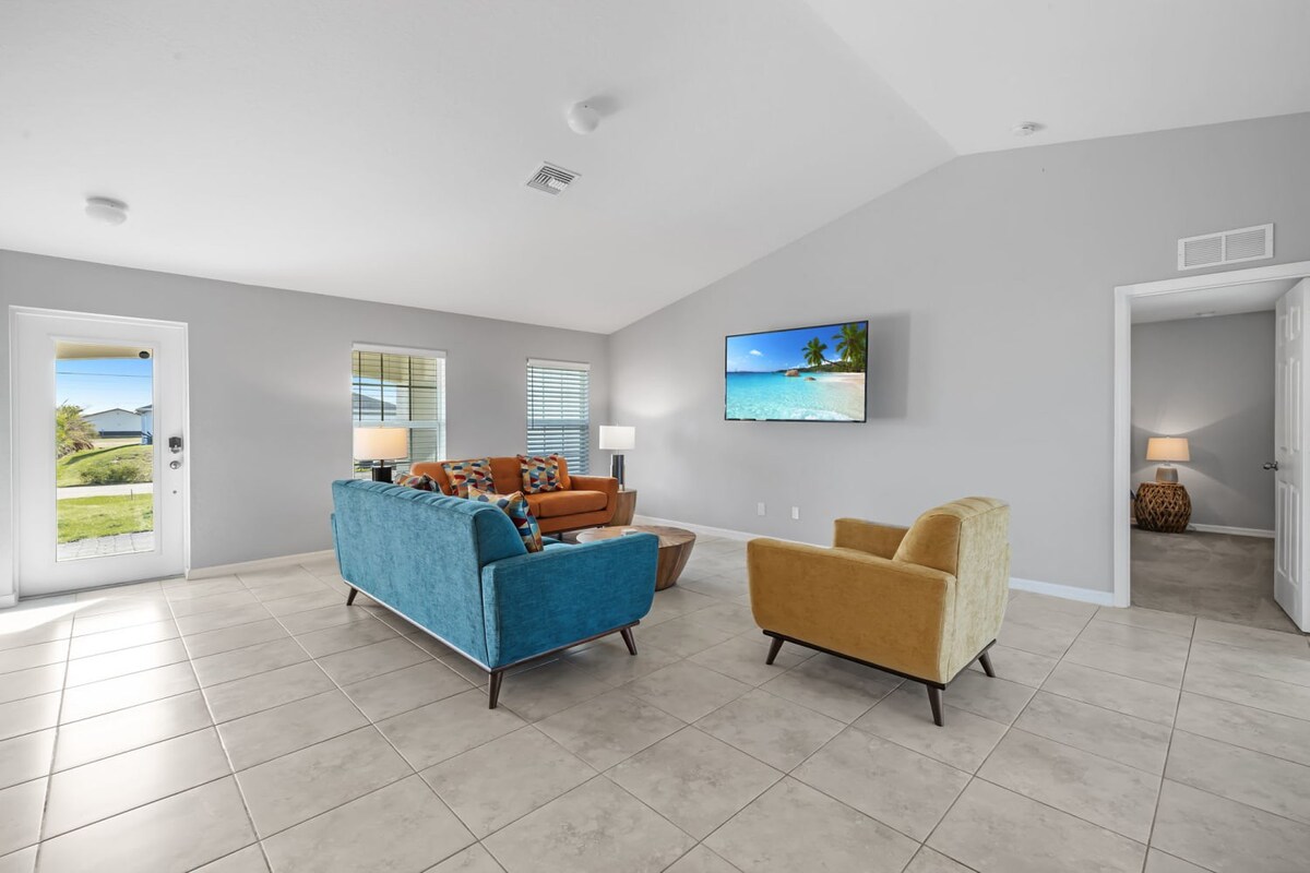 New construction, single-level 3BR/2BA home in quiet NW Cape Coral with a screened lanai, fast Wi-Fi, and a 3-car garage. Ideal for families, couples, golf trips, and snowbird-style getaways.