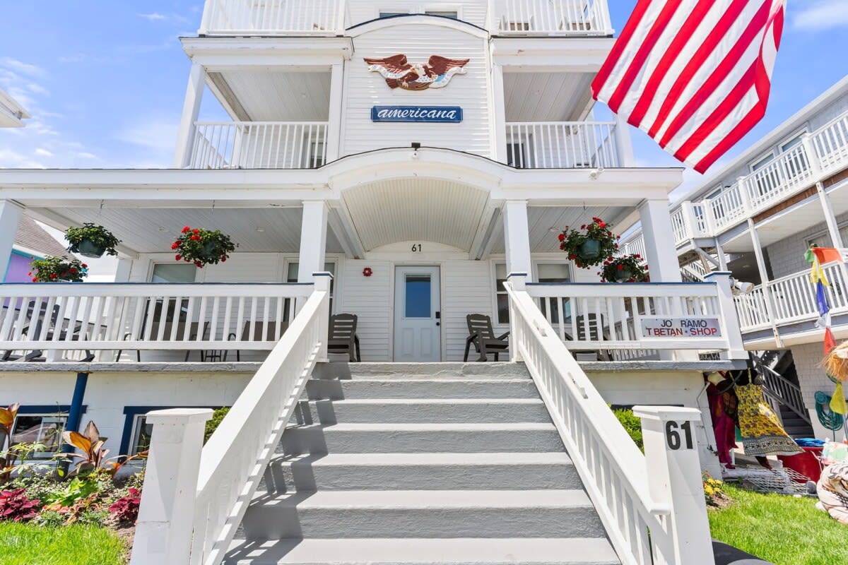 Welcome to "The Americana" at Hampton Beach - a perennial favorite in the heart of the action. Steps from the beach, arcades, mini-golf, Seashell Stage, Casino Ballroom & more. Perfectly situated at the beginning of "the strip." Your unforgettable beachside escape awaits! "The Porch" is located right at the beginning of the boardwalk, just steps from the sandy shores of Hampton Beach!