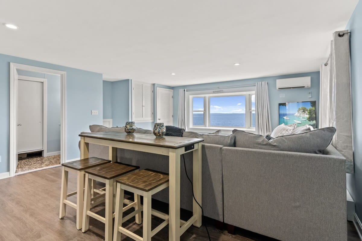 Beautiful place. Amazing view of the water. Sitting on the couch, it's like you are on a yacht looking out at the ocean (no land, no street). Close to beach. Close to Portsmouth and not too far from Kittery. Would absolutely return.