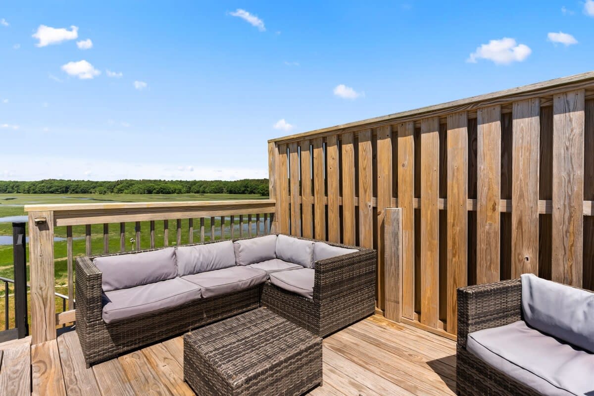 ✫ Rooftop deck with outdoor couches, marsh and ocean views (accessible by spiral staircase)