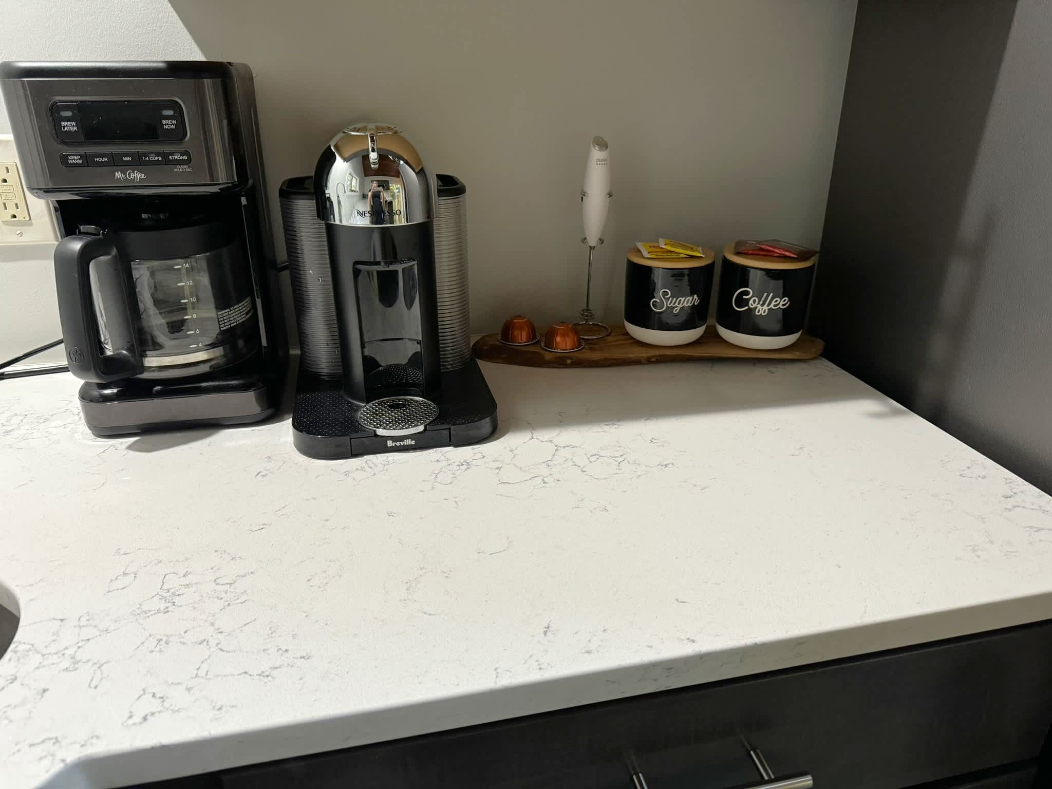 ✫ Step into the first-floor kitchen, boasting updated appliances and everything you need for your at home (or take-out) culinary adventures. We have 2 coffee machines at this home. There is coffee provided for the drip coffee maker. We provide 2 Nespresso Vertuo pods for the Nespresso machine per stay. Please bring additional of your own preferred, Nespresso pods :)