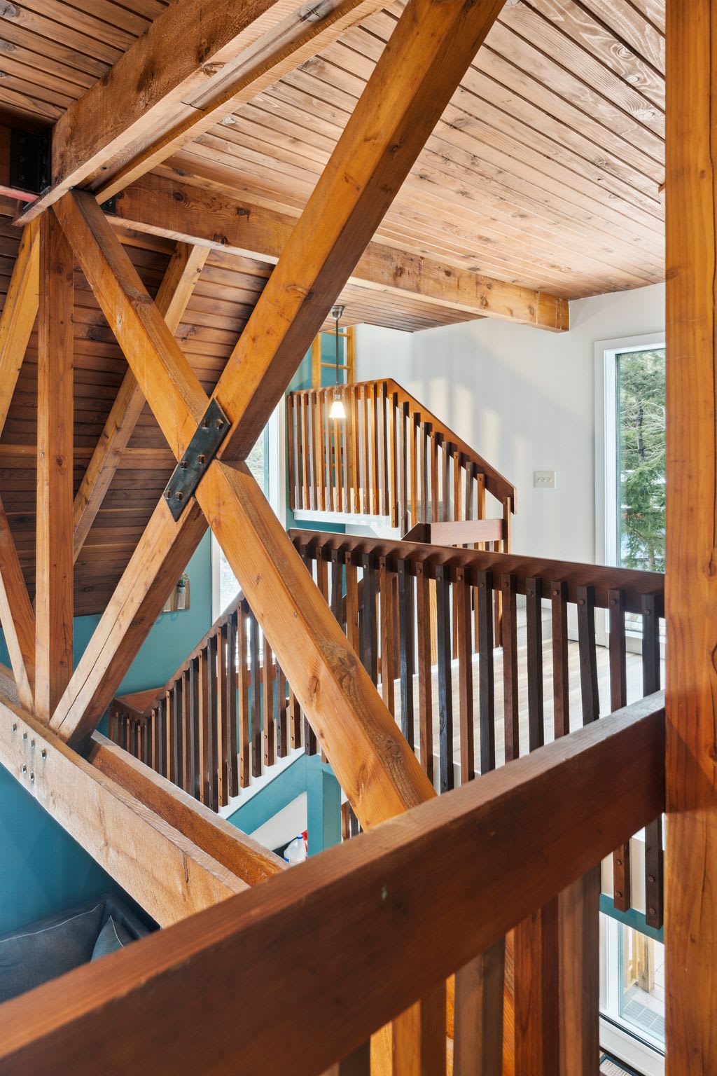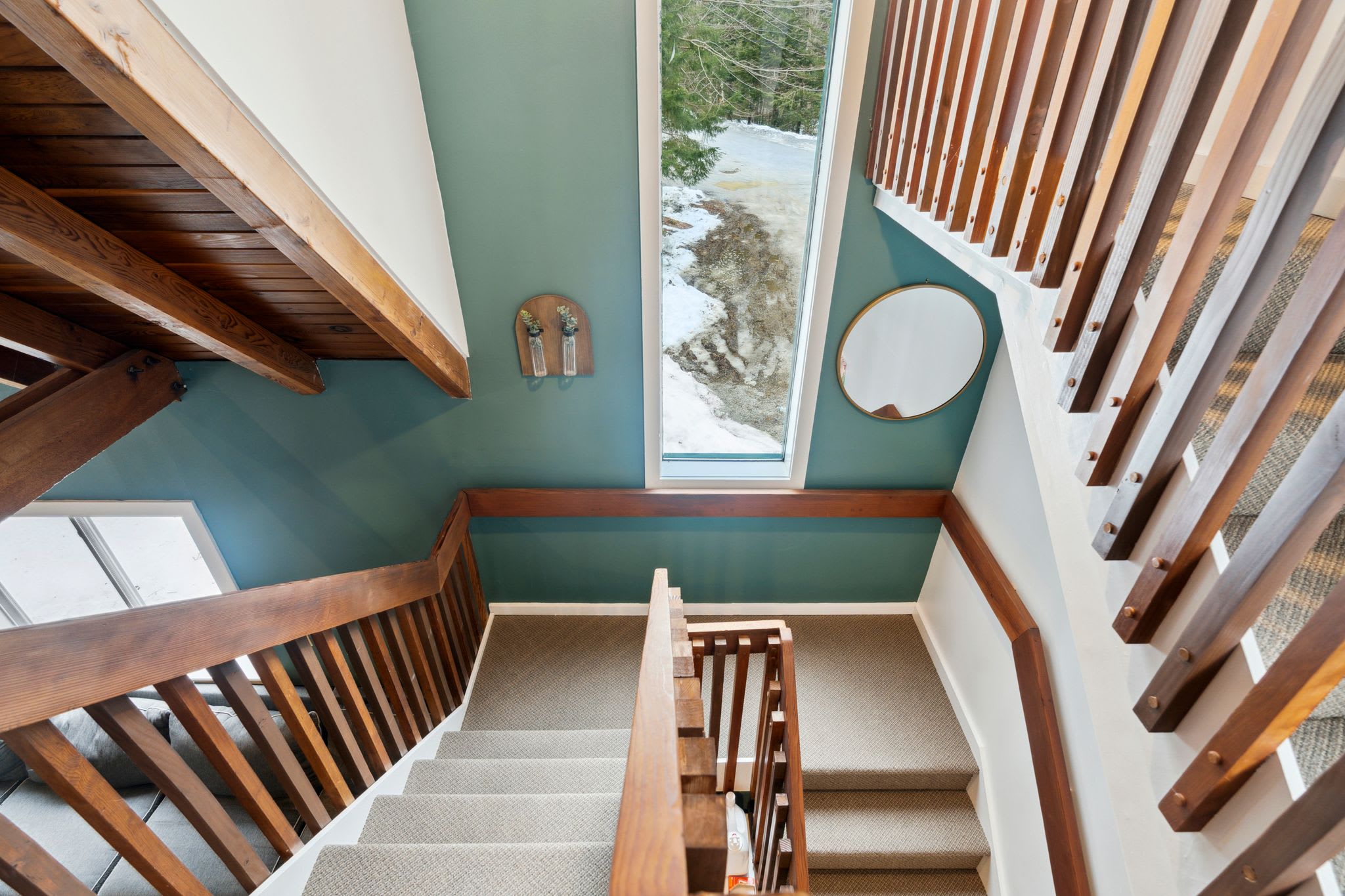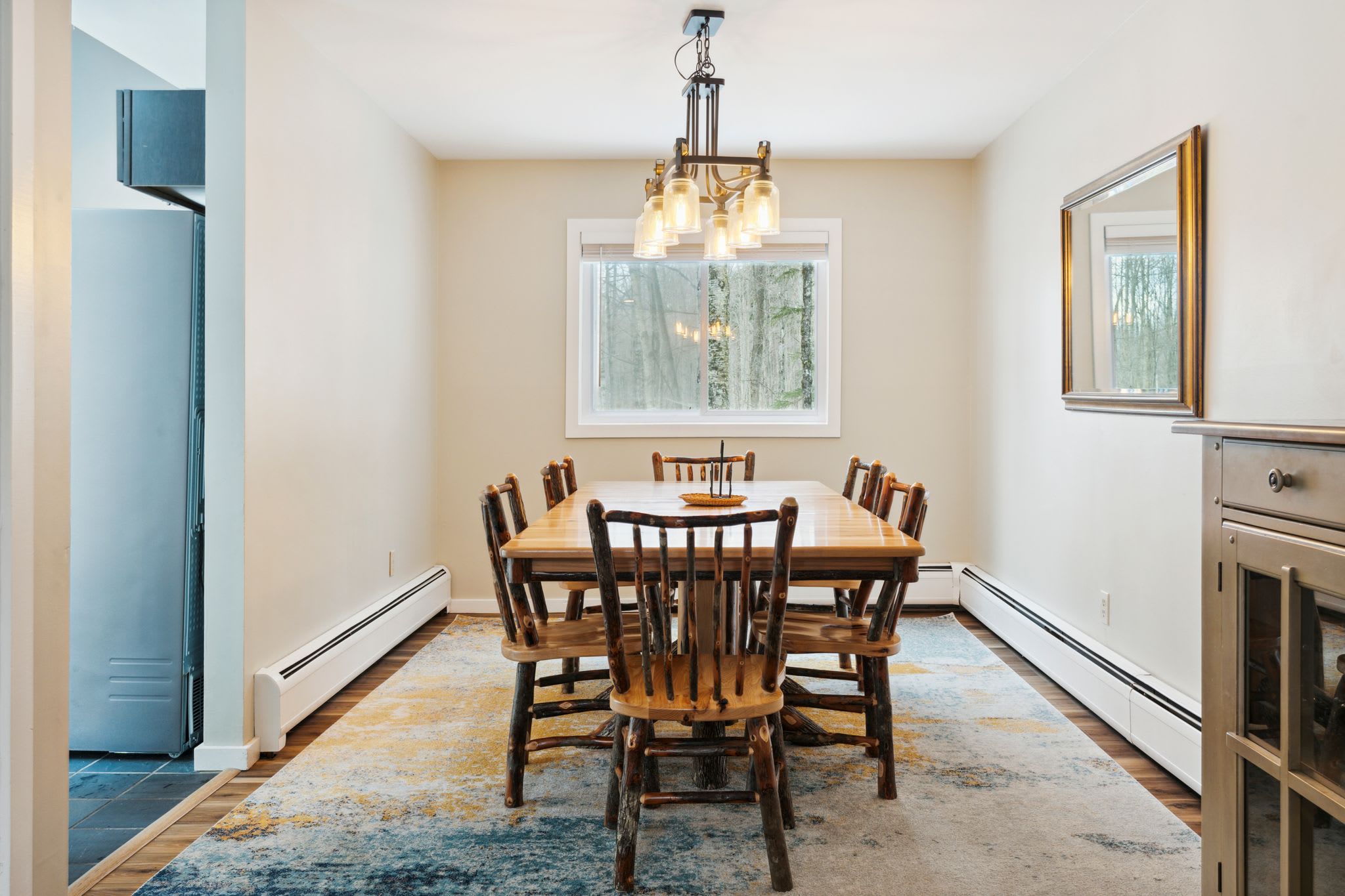 ✫ Cozy up in the living room, adorned by high ceilings and wood beams that make you feel cozy in your Vermont home. Furnished with a large sectional couch, 80” Smart TV with Netflix for movie nights. Books provided for additional relaxation time!