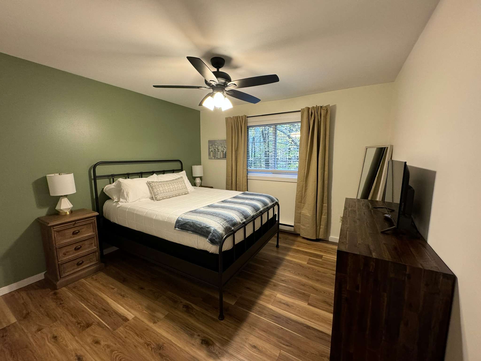 ✫ Queen-sized bed for a comfortable and restful night's sleep.